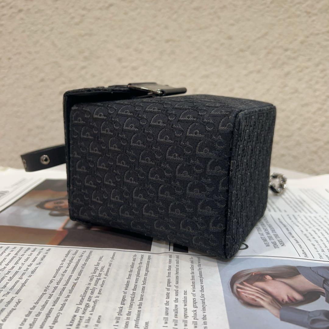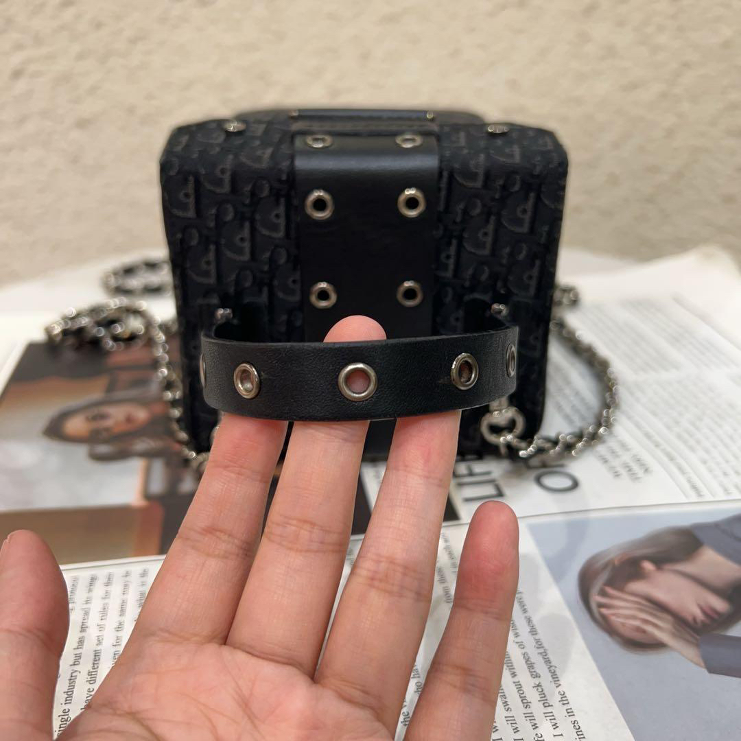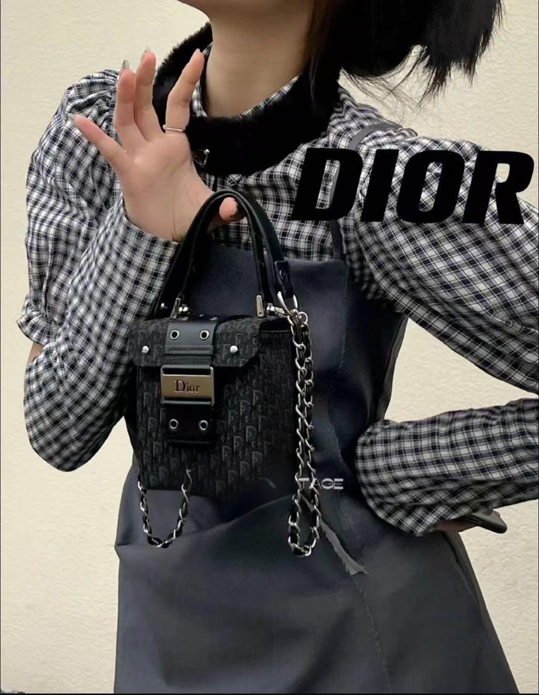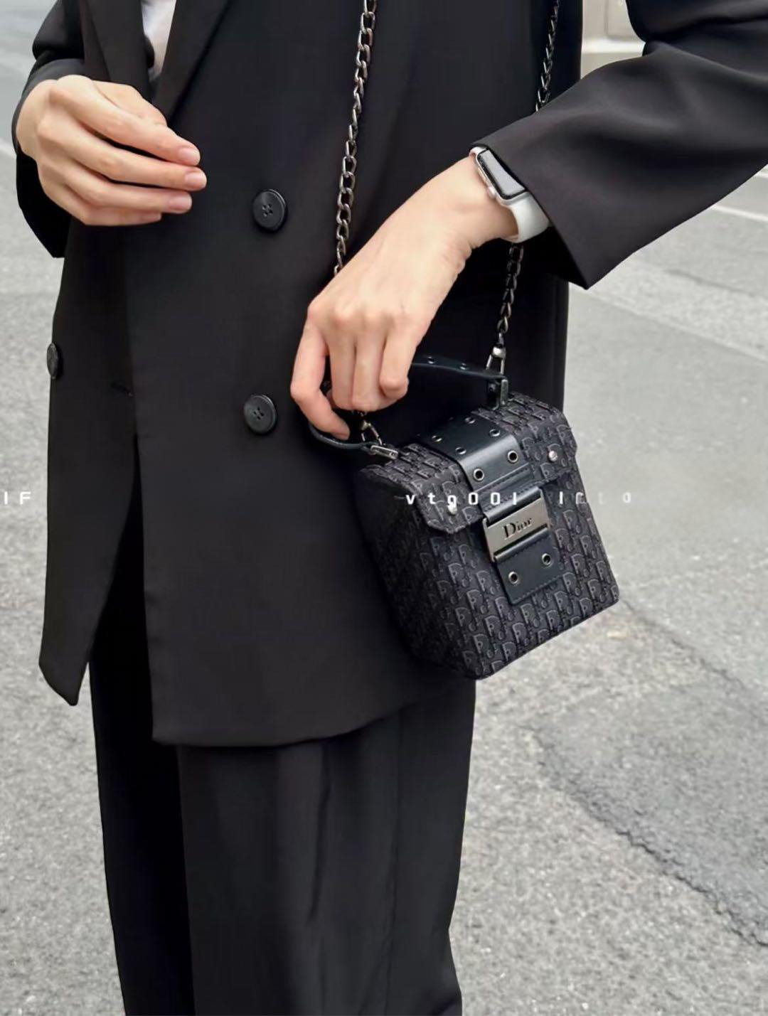 正品二手 Dior Punk 黑色 老花拼皮 中古 手提包🧢95新 12x12 配件:防尘袋。手提柄油边正常干纹 小众不撞包超可爱!