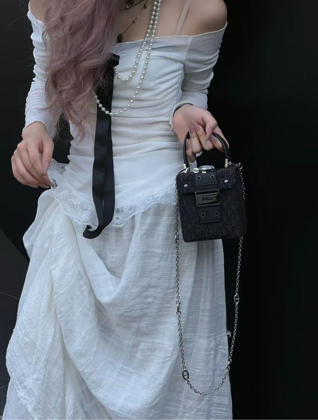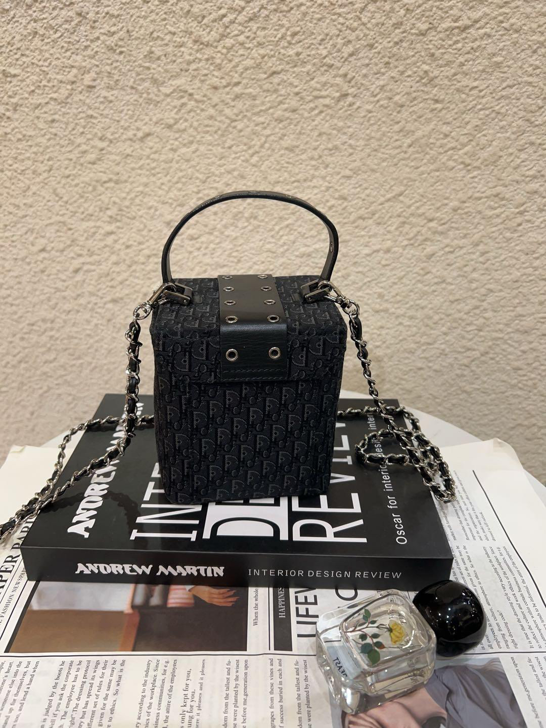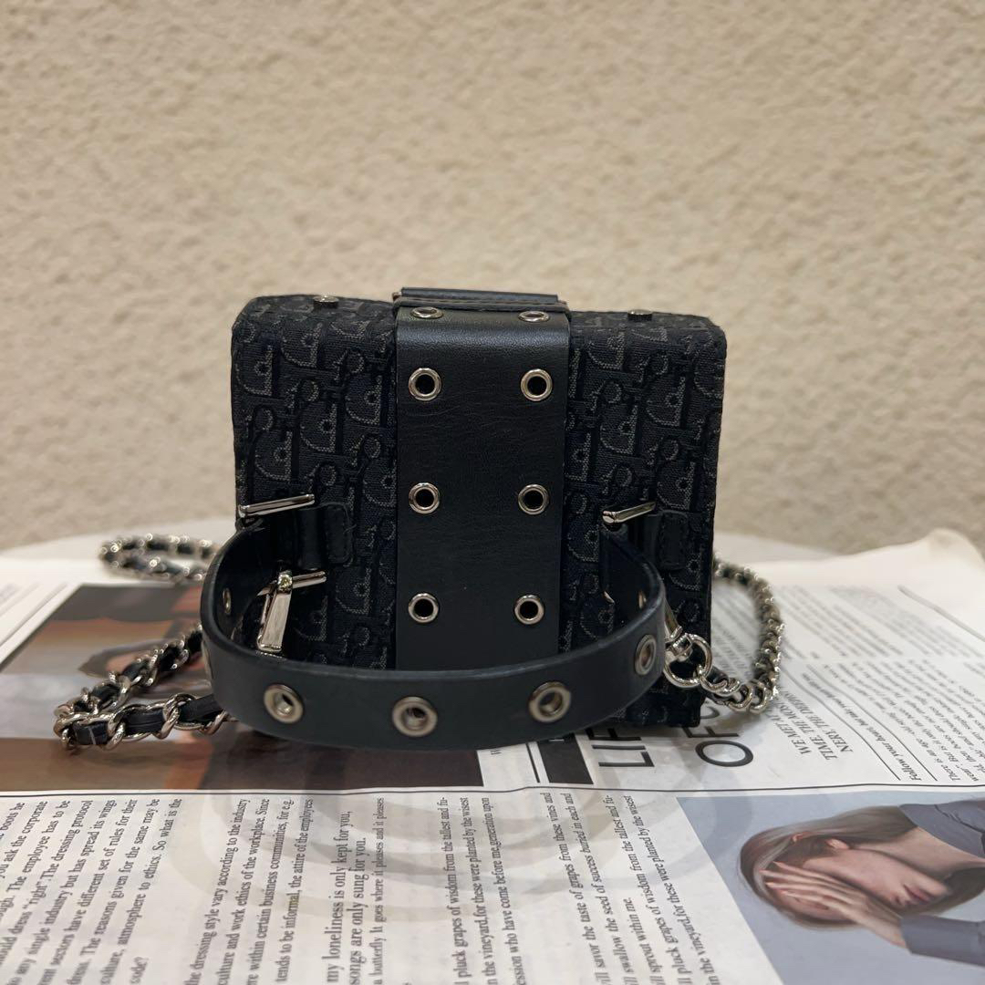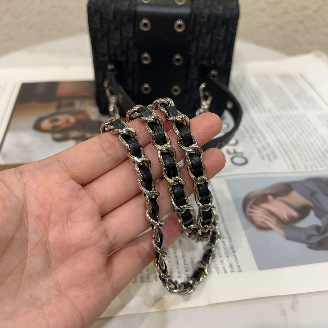 正品二手 Dior Punk 黑色 老花拼皮 中古 手提包🧢95新 12x12 配件:防尘袋。手提柄油边正常干纹 小众不撞包超可爱!