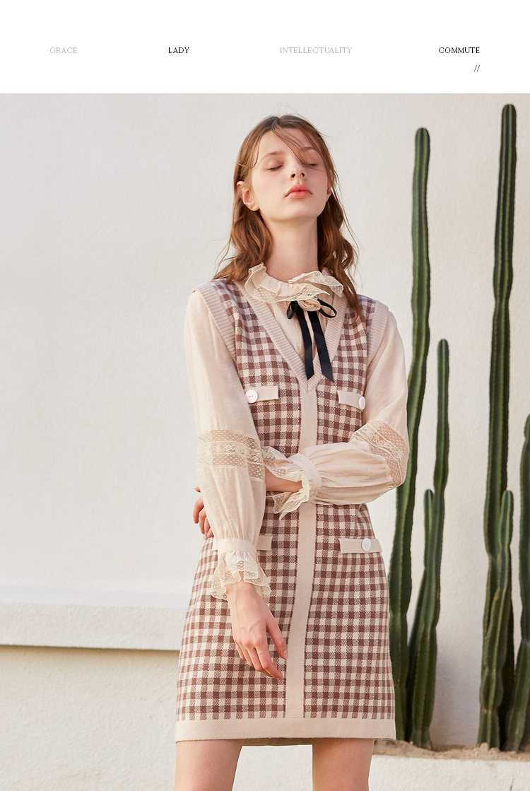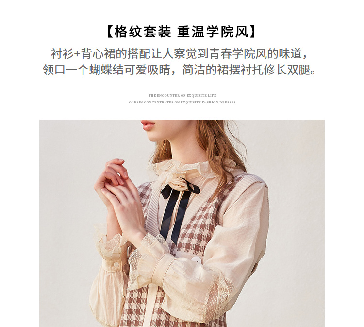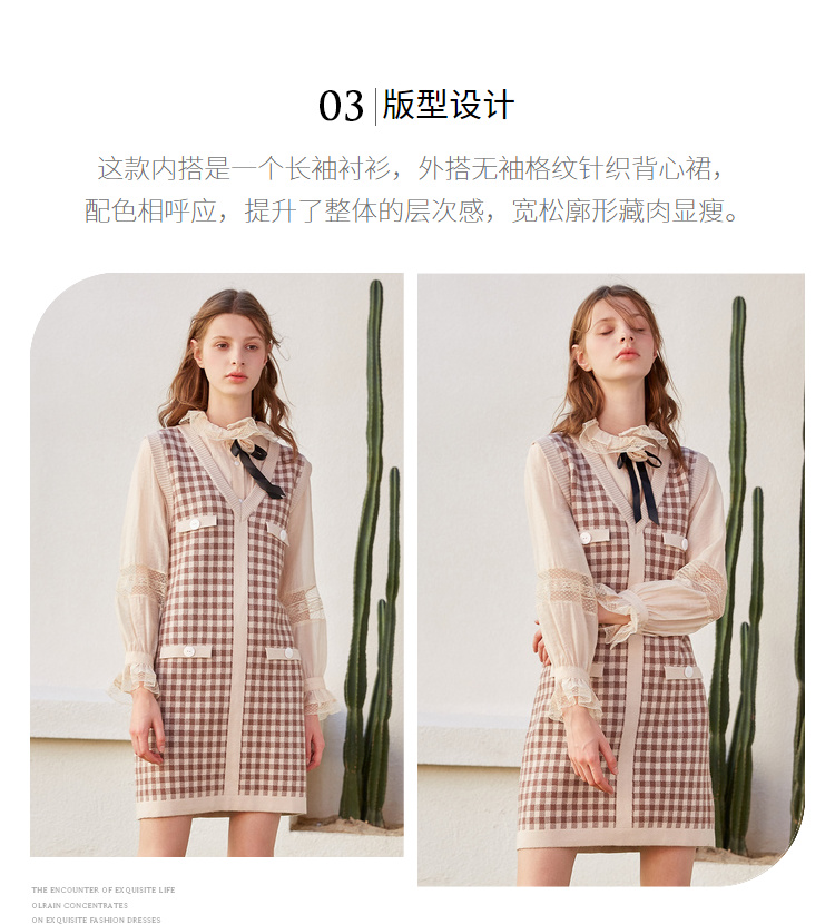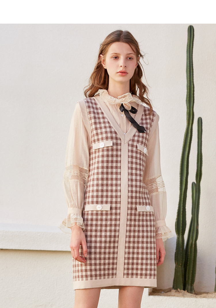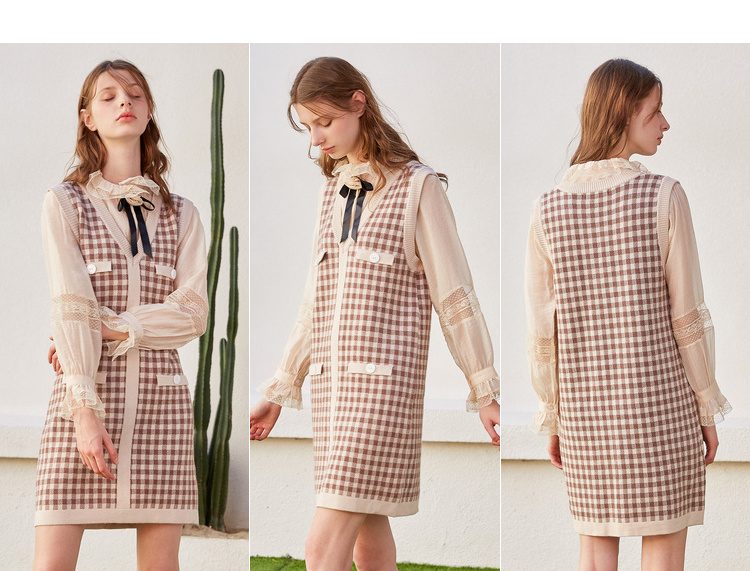 欧芮儿 春装女2020新款女装格子针织连衣裙女裙子