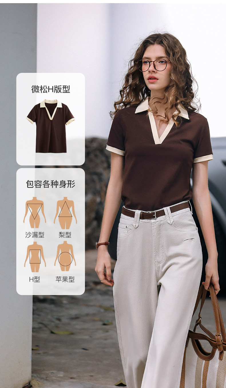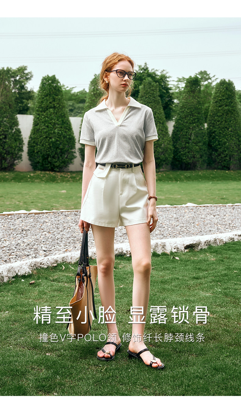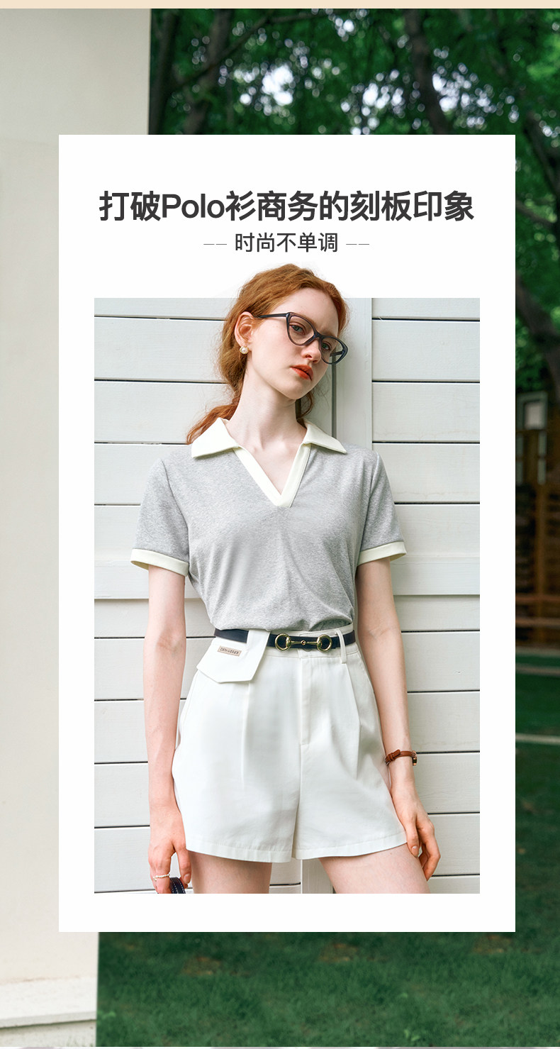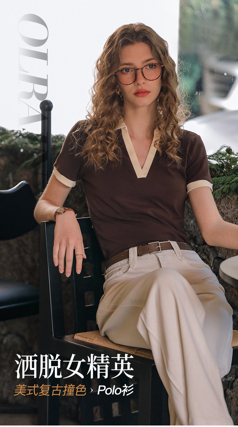欧芮儿法式复古polo领T恤女春夏2024新款气质撞色翻领短袖上衣