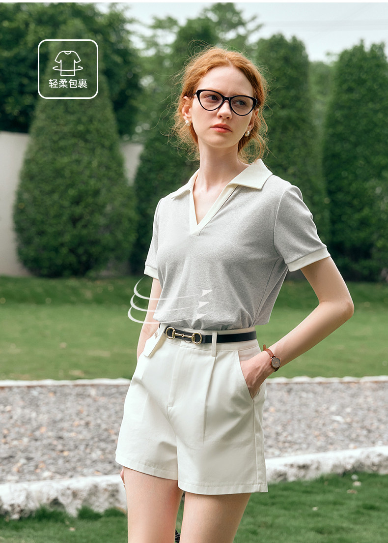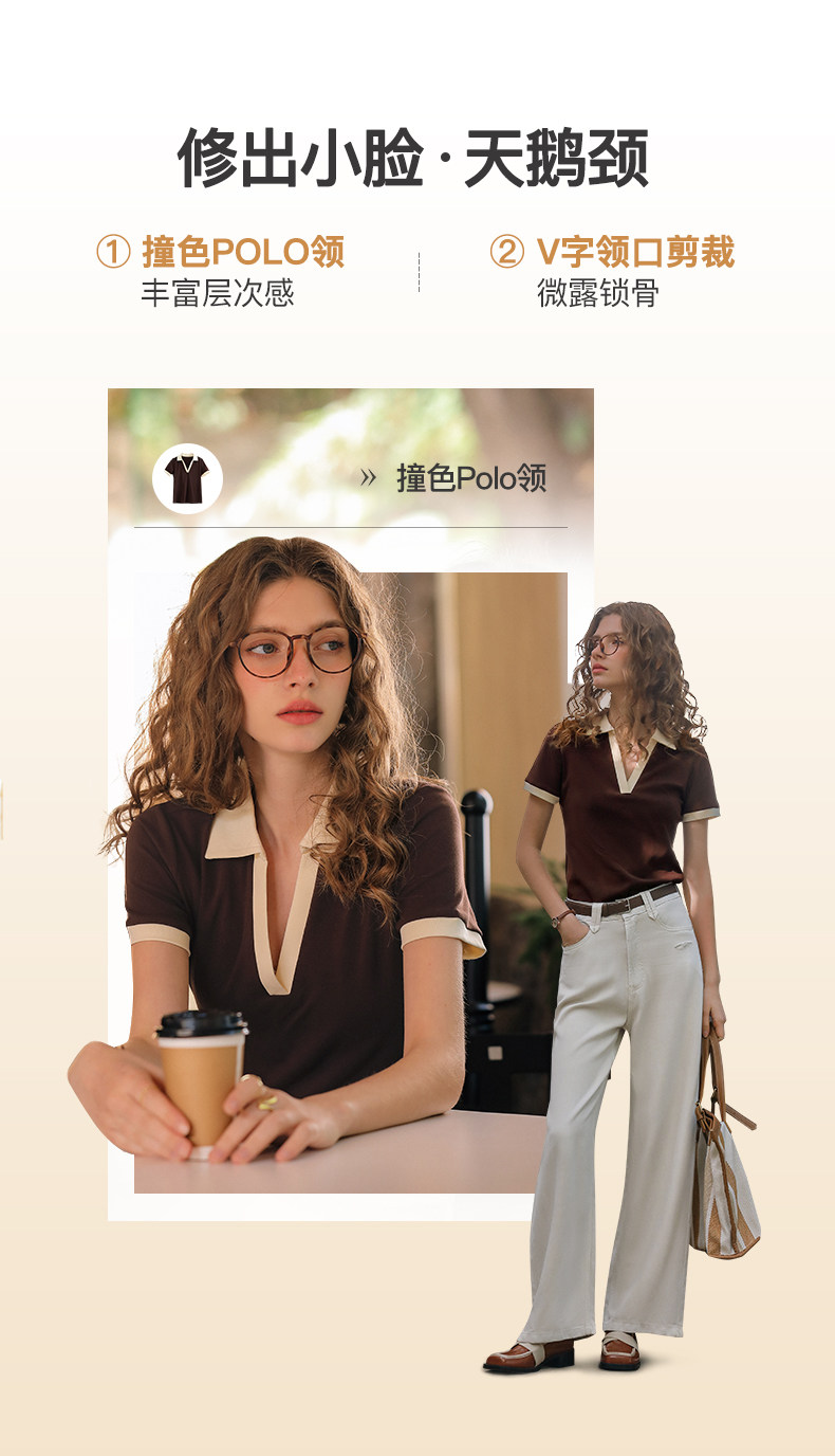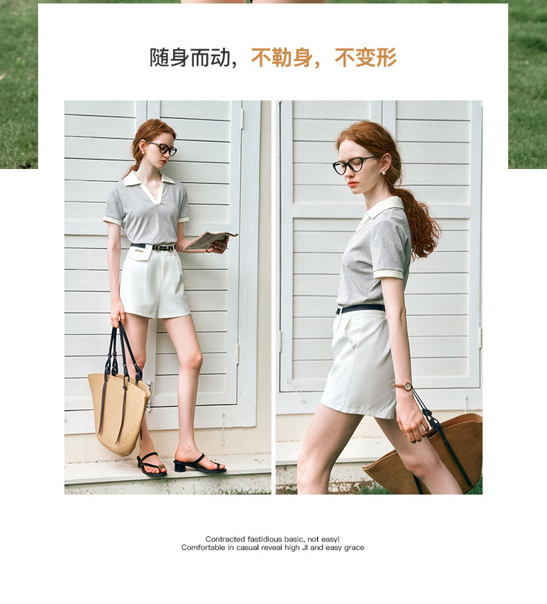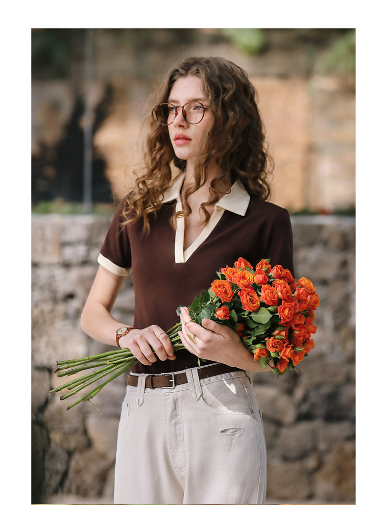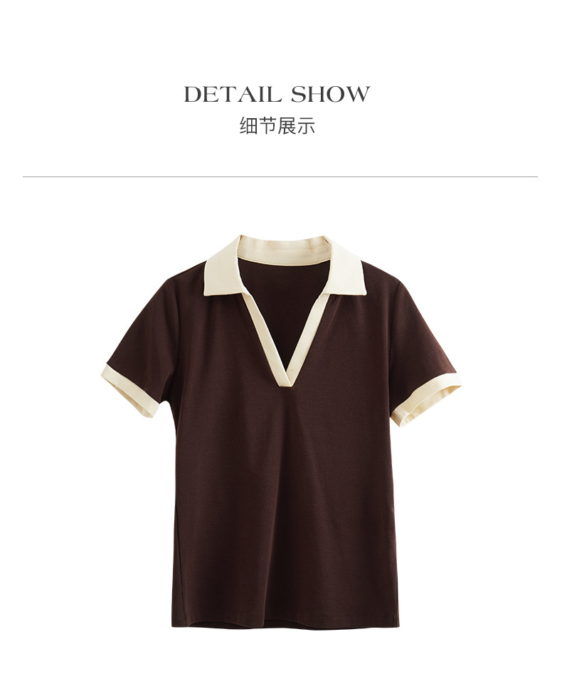 欧芮儿法式复古polo领T恤女春夏2024新款气质撞色翻领短袖上衣