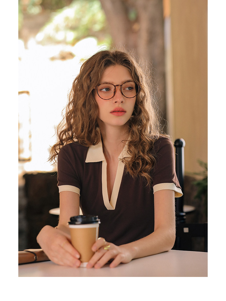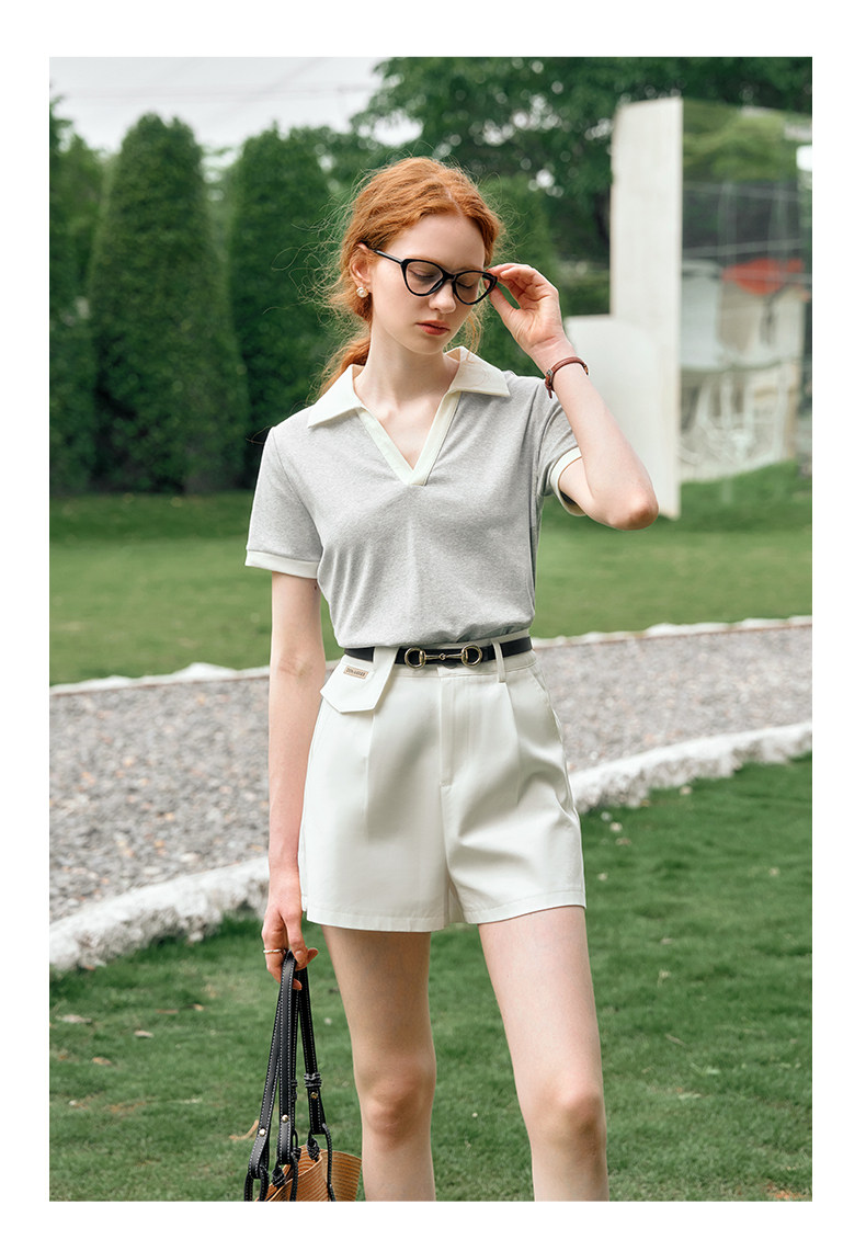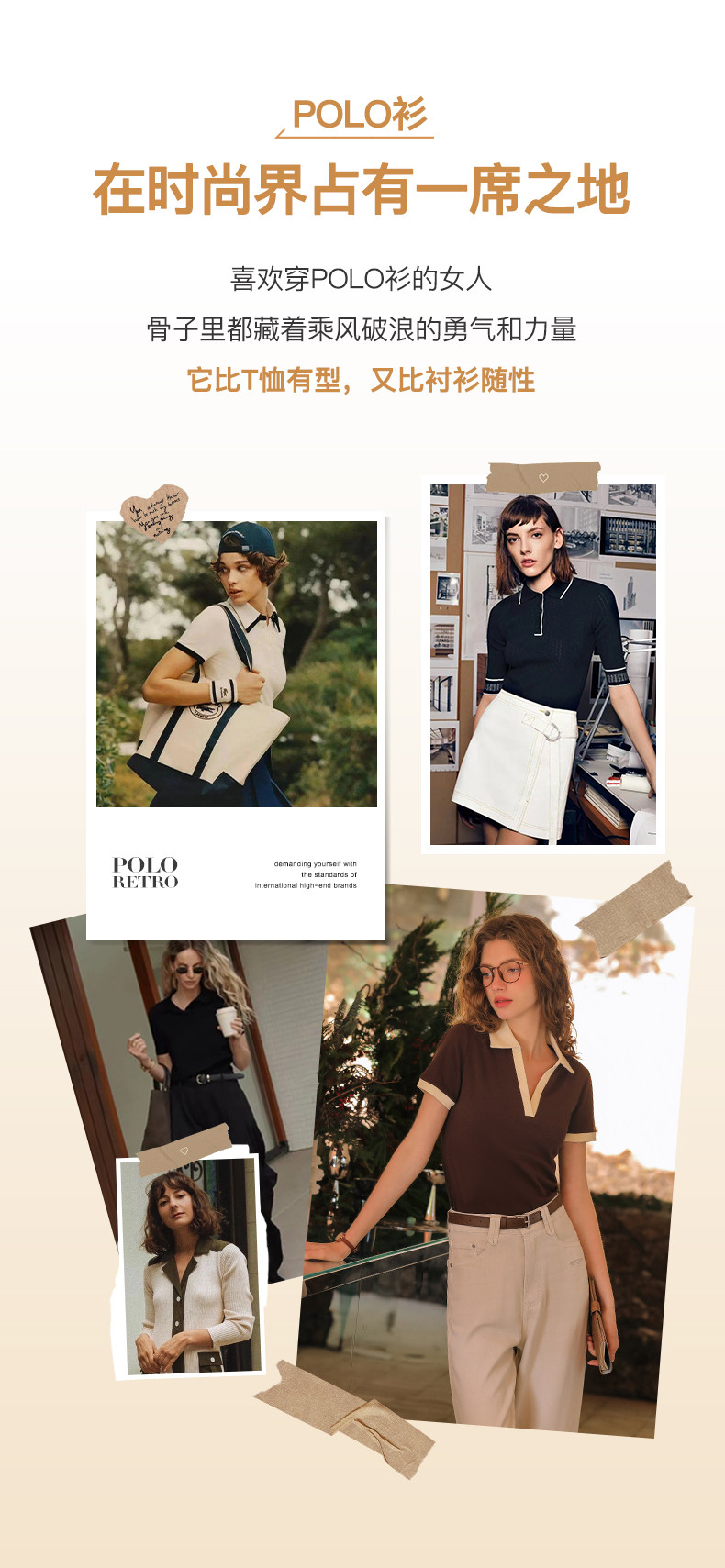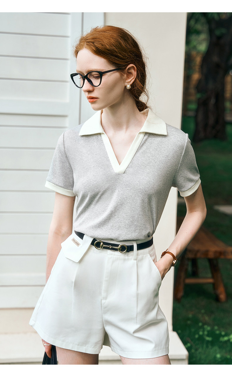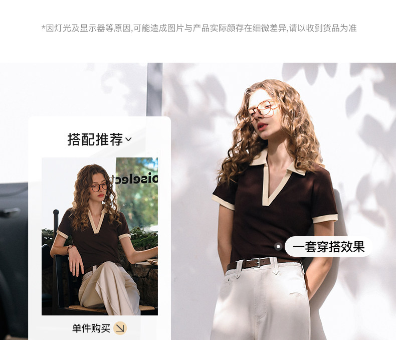 欧芮儿法式复古polo领T恤女春夏2024新款气质撞色翻领短袖上衣