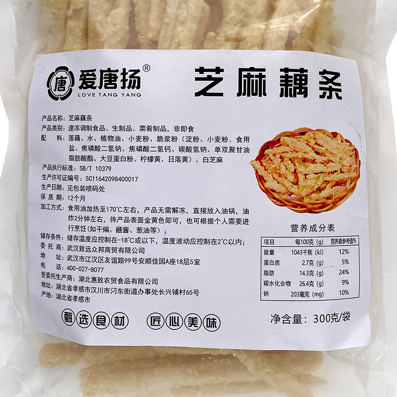 爱唐扬芝麻藕条300g整箱藕棒油炸干煸小吃冷冻半成品商用食材(顺丰发货)