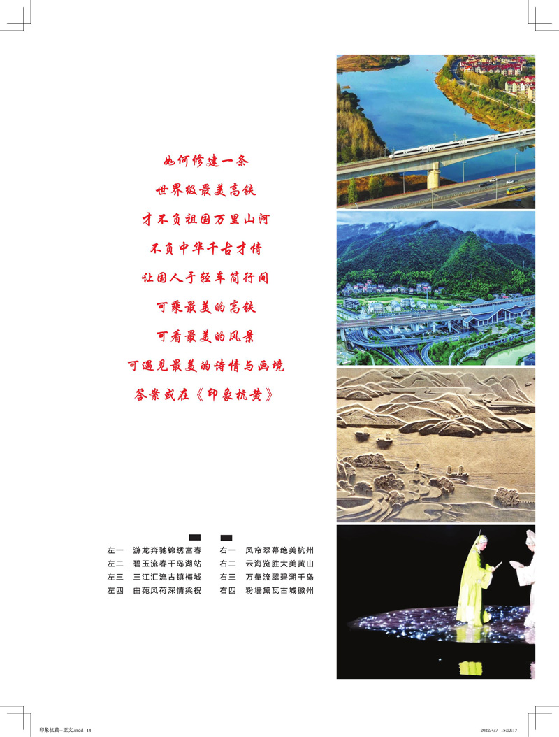 本书是《杭黄高铁创新设计丛书》的分册之一,是从整体角度对杭黄高铁的介绍,包括杭黄高铁沿线的风光、设计过程中解决的生态、选线、站城融合、环境融合等技术难题,为读者展开一副和谐、美丽的画卷。介绍了杭黄高铁在设计、建设过程中,以“美丽杭黄、生态高铁”为建设总目标,贯彻“四季常绿、三季有花”的绿化设计理念,高标准建设铁路绿色通道。在探索“畅通融合、绿色温馨、经济艺术、智能便捷”的现代化铁路客站建设新理念过程中,融合地域文化特色,铸造了站房标杆。按照“精品杭黄”的建设理念,精心设计,精心施工,在轨道工程、四电工程等方面,努力创新设计,改革施工工艺,解决了各类技术难题,树立了轨道、四电等行业标杆。