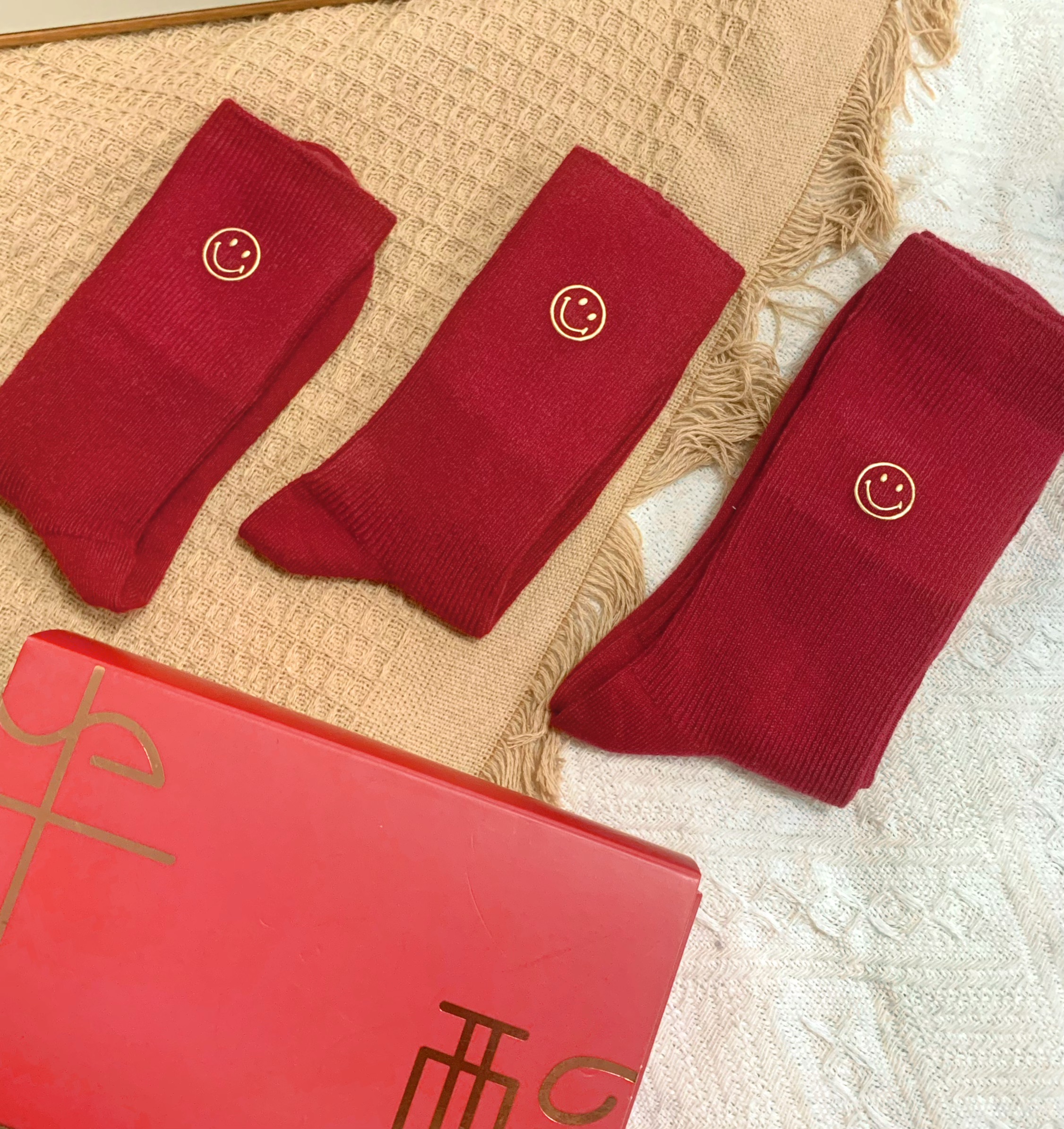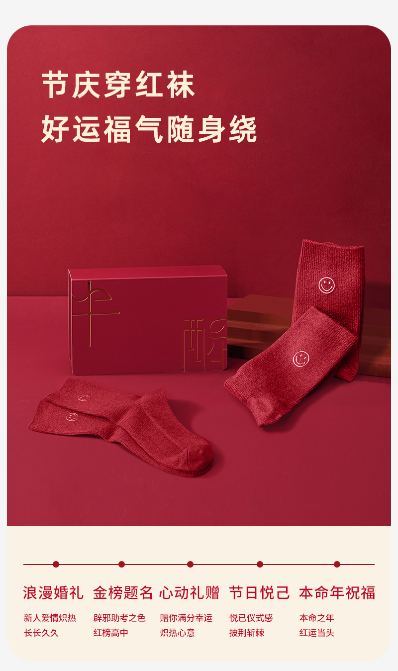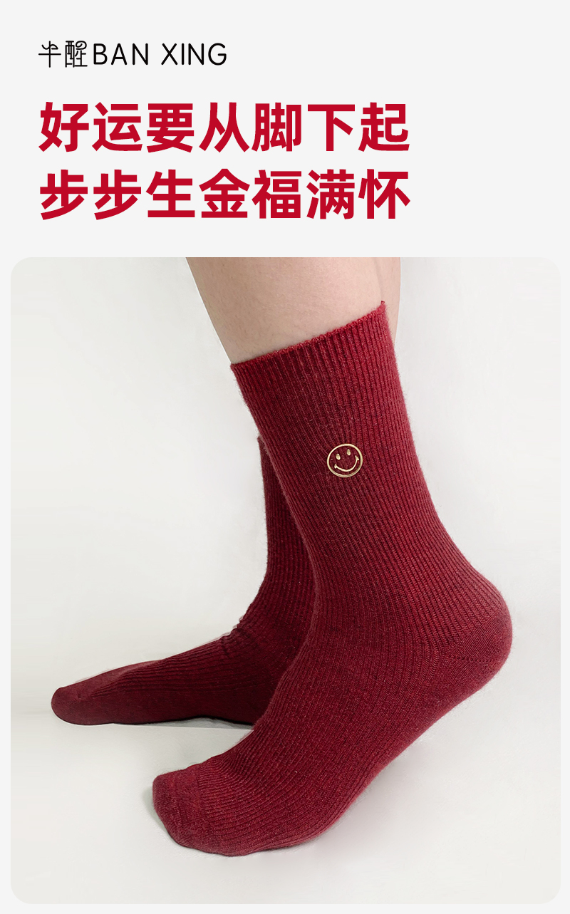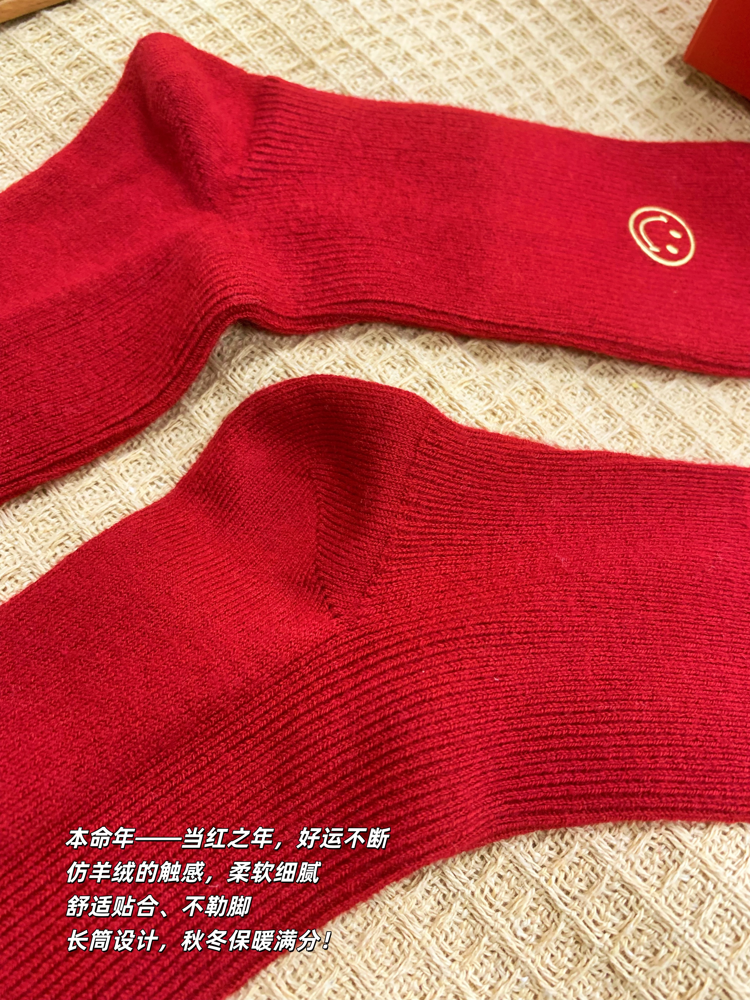 *【半醒】本命年荣耀红女士袜子精仿羊绒抗菌抑菌长筒设计礼盒