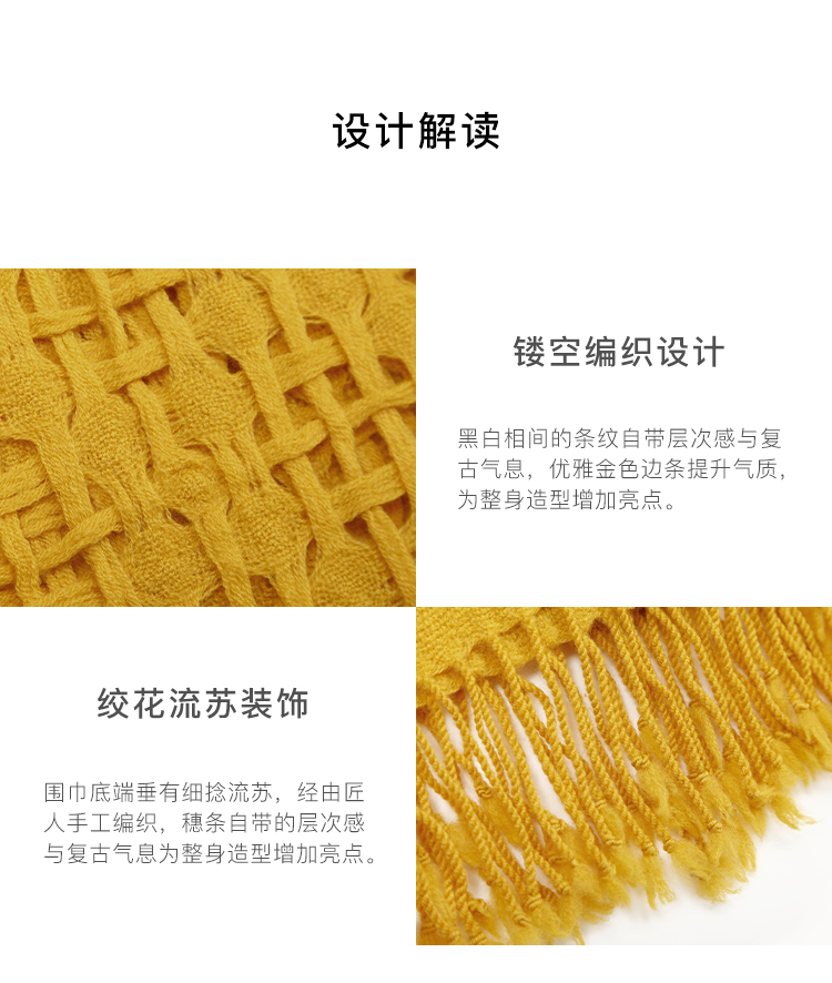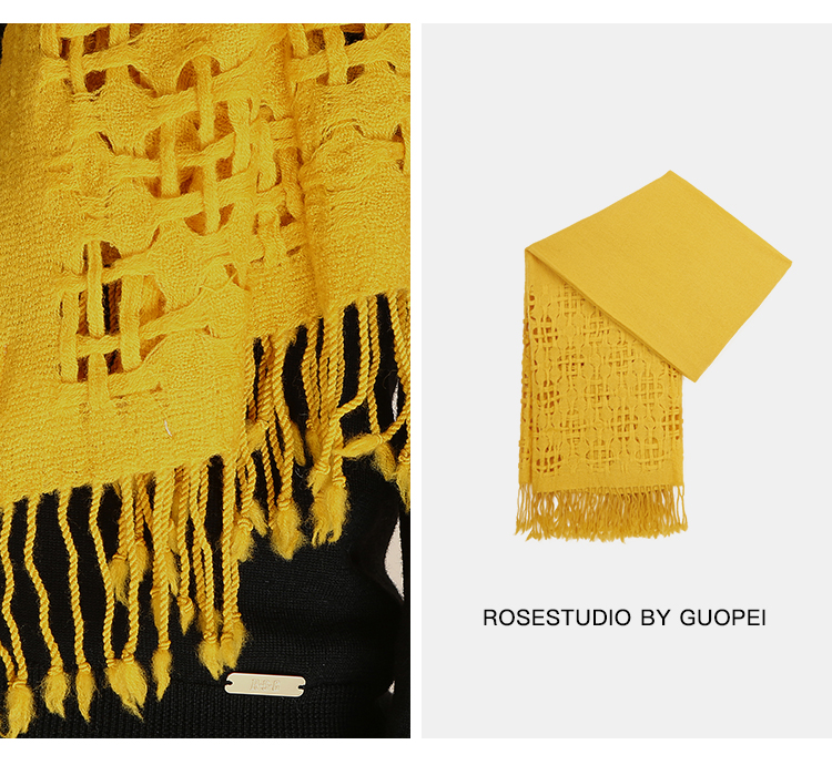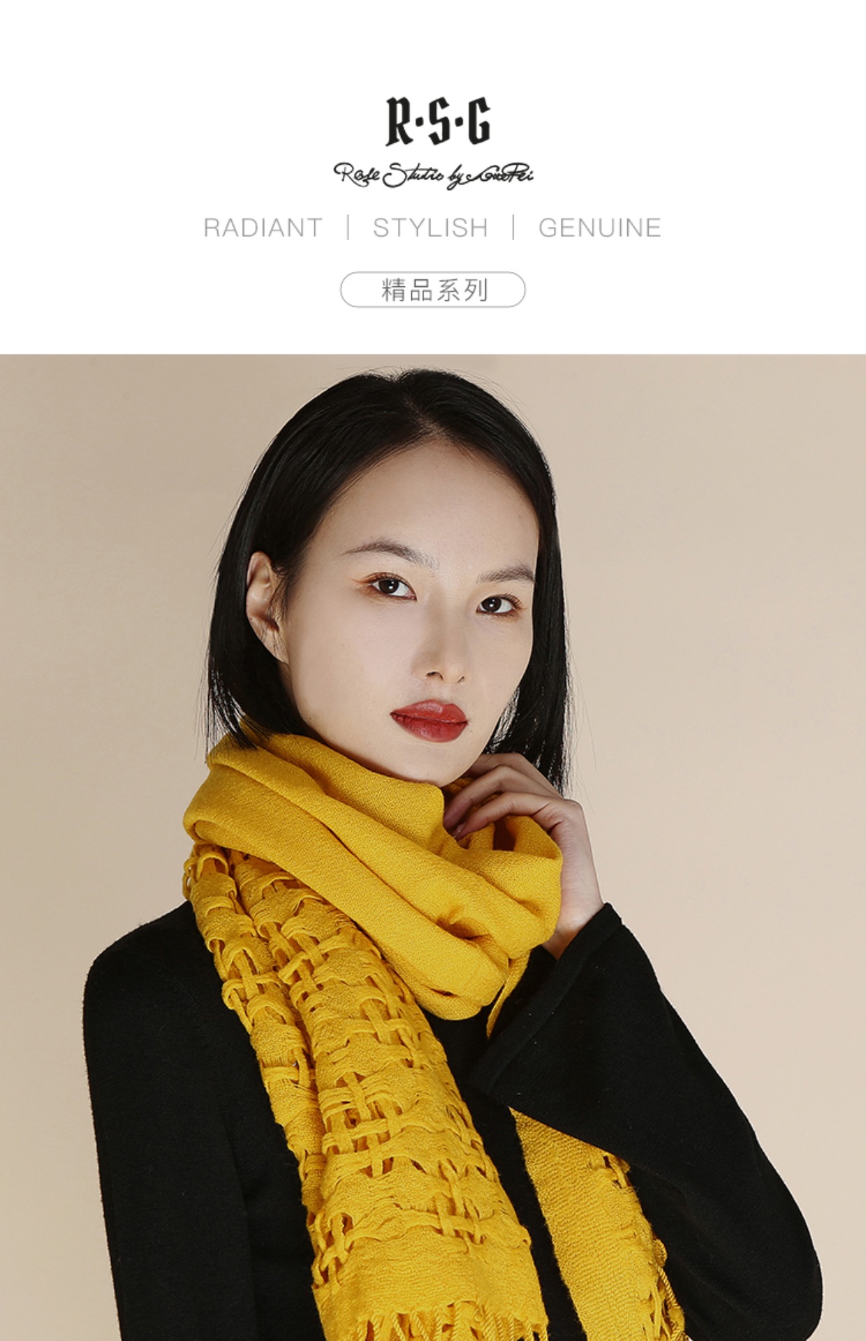 RSG郭培成衣品牌纯羊毛镂空流苏编织毛线国风围巾