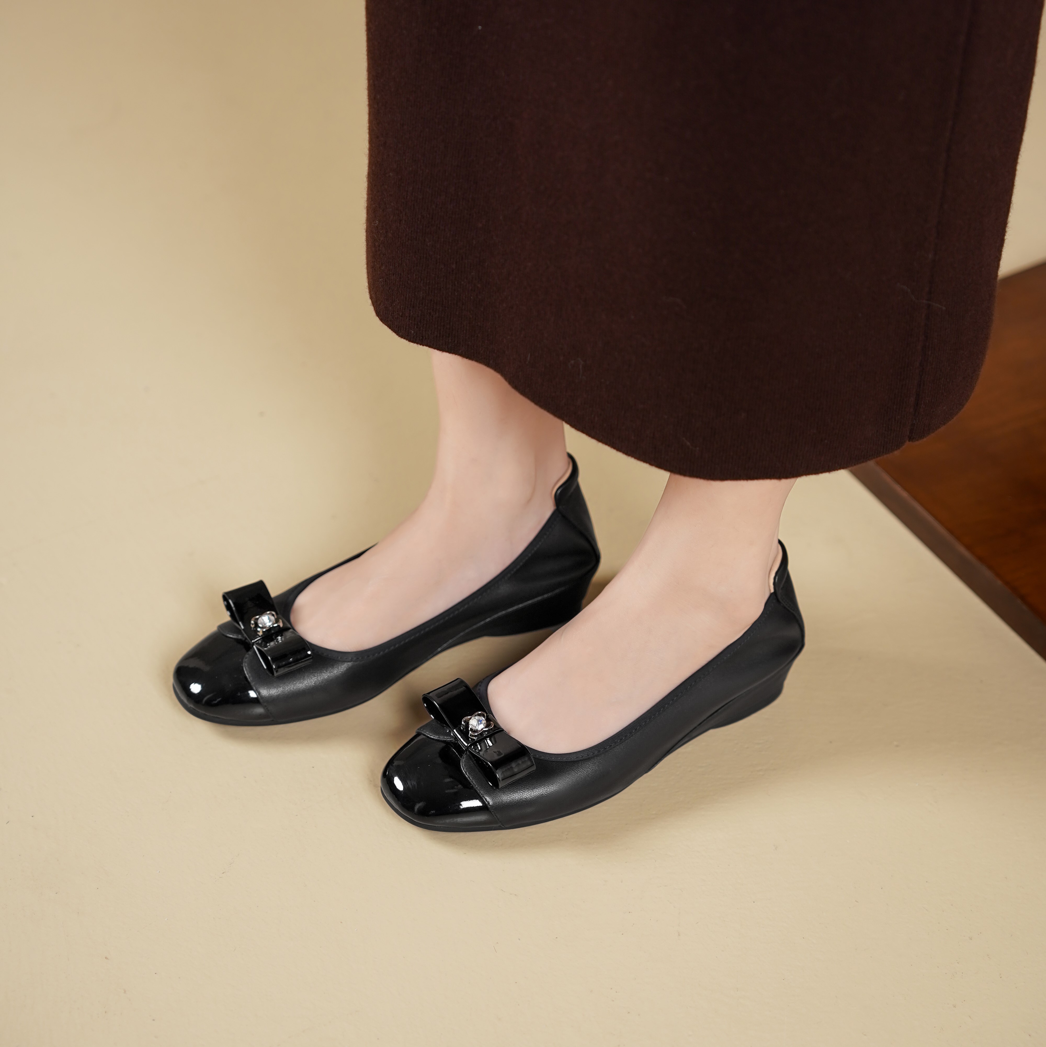 西村名物2025年春季新款舒适平底复古百搭低跟单鞋X25AE14221