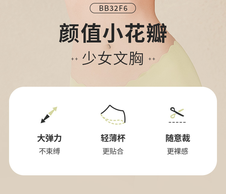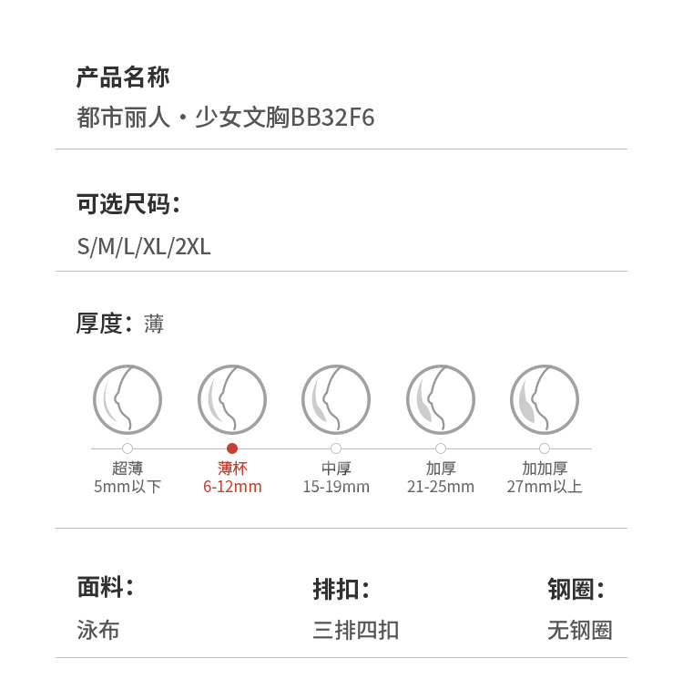 都市丽人少女优选泳布内衣薄款三角杯少女文胸无钢圈三排扣BB32F6