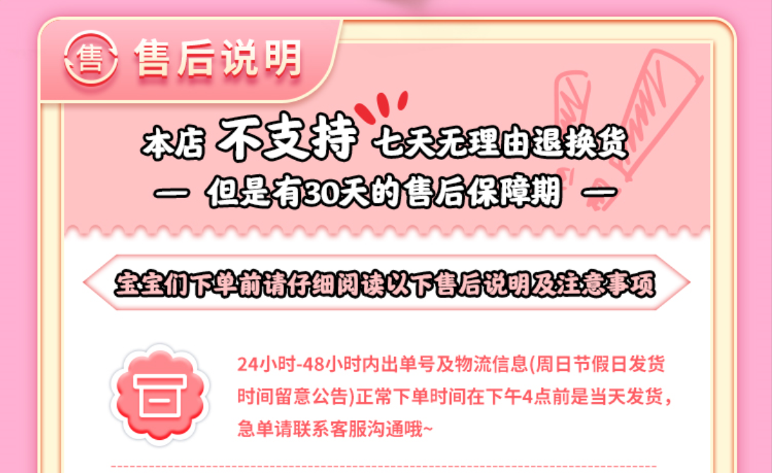 售后说明:下滑页面至文末查看,本店不支持7天无理由退换货,注意详细阅读!!!!!