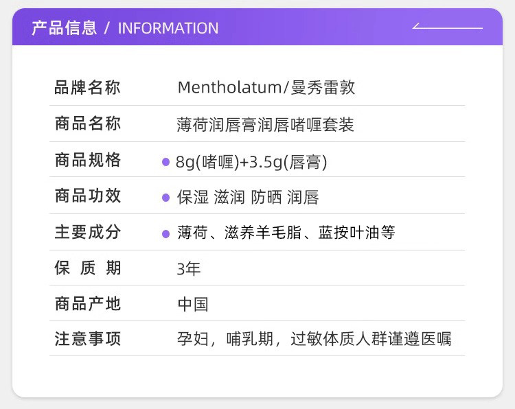 曼秀雷敦薄荷润唇啫喱+薄荷唇膏
