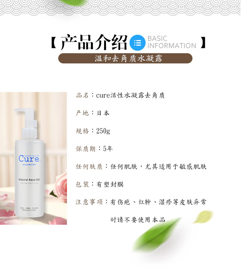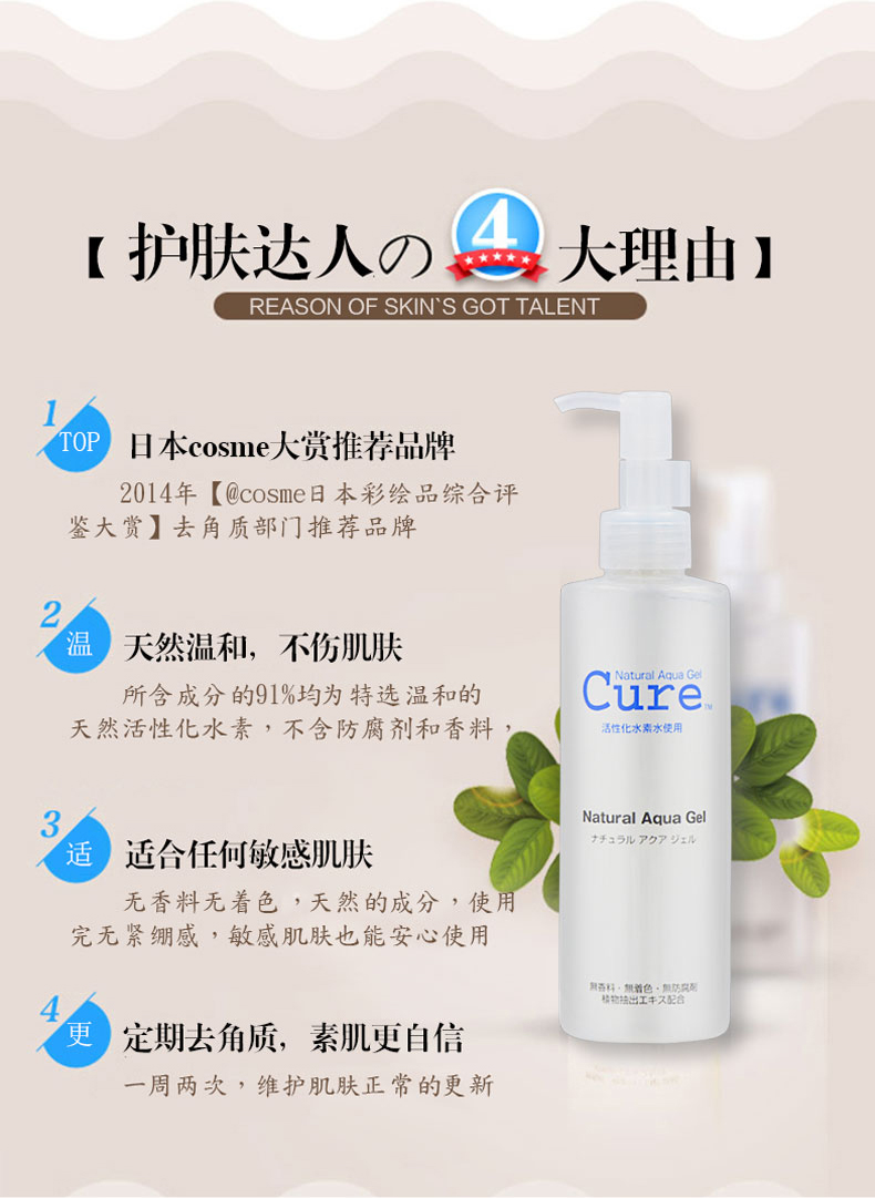【跨境】日本CURE活性化水素去角质凝胶250g/瓶(效期2027/4/1)