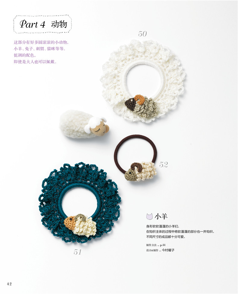 ·在基础课程和重点课程两个章节中介绍了书中用到的所有针法和实用基础,非常适合初学者。