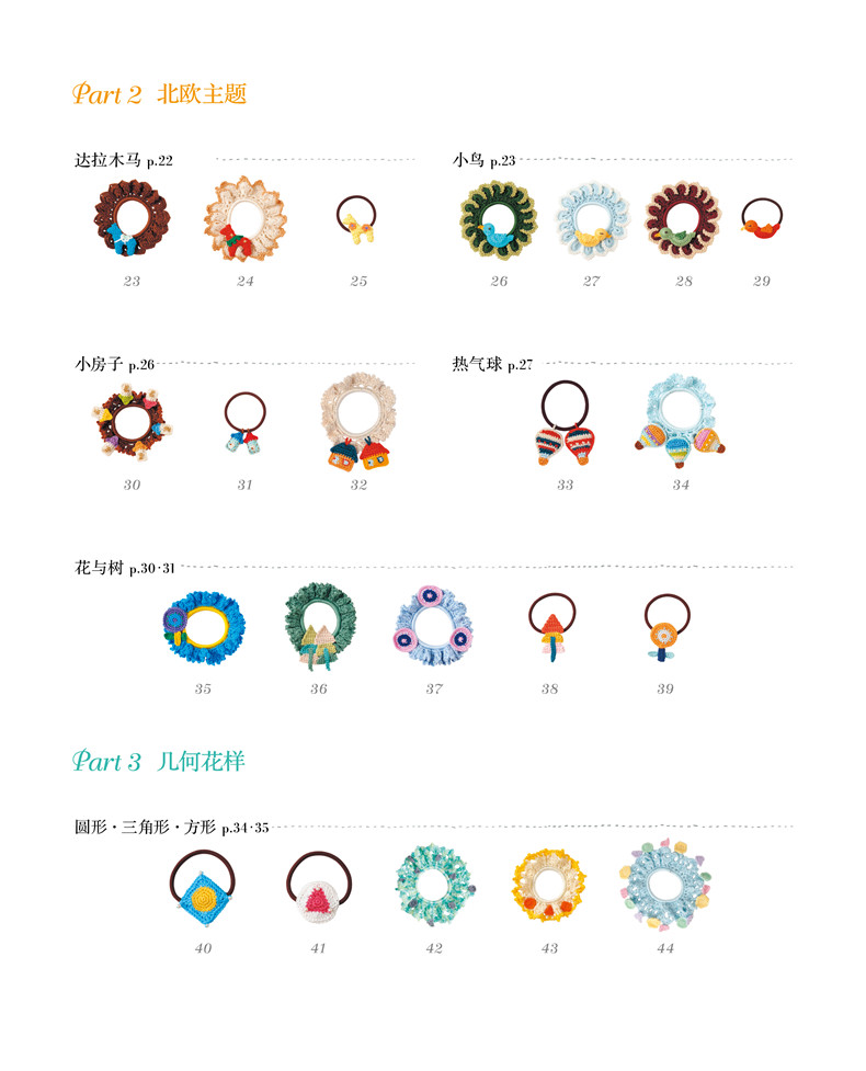 使用人气的25号刺绣线钩织系列图书,一年四季都能享受的简单钩編,10分钟即可轻松完成。在交换礼物的场合或者义卖会上都受到女性大大的欢迎。作品以五彩缤纷的花卉发饰为主,同时加入了北欧风格、几何学元素和小动物主题的68款精美作品。