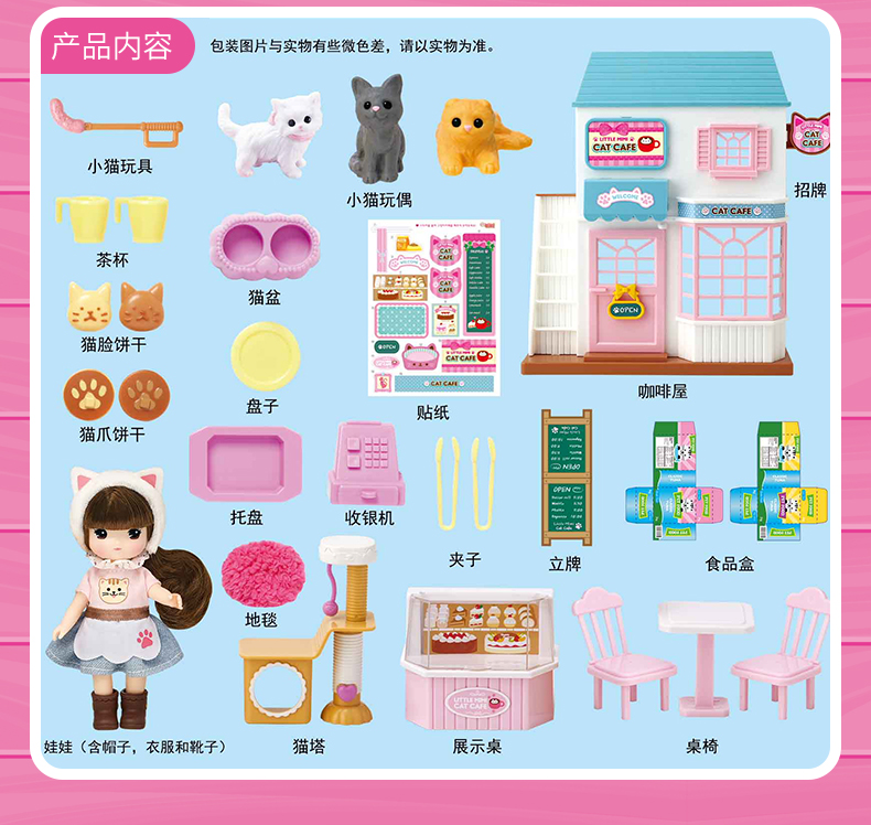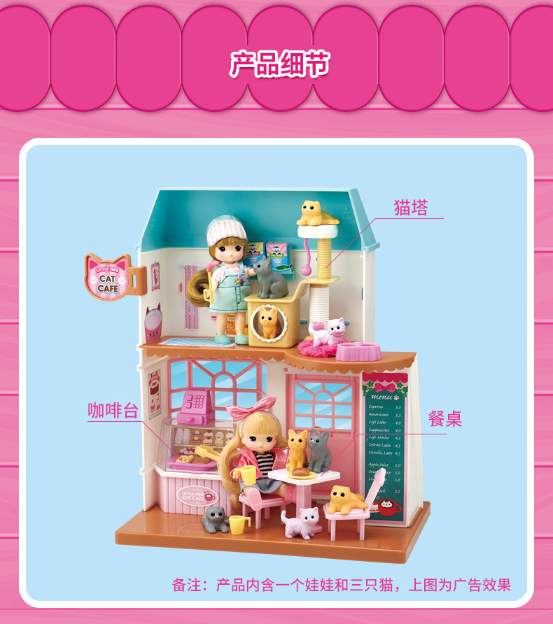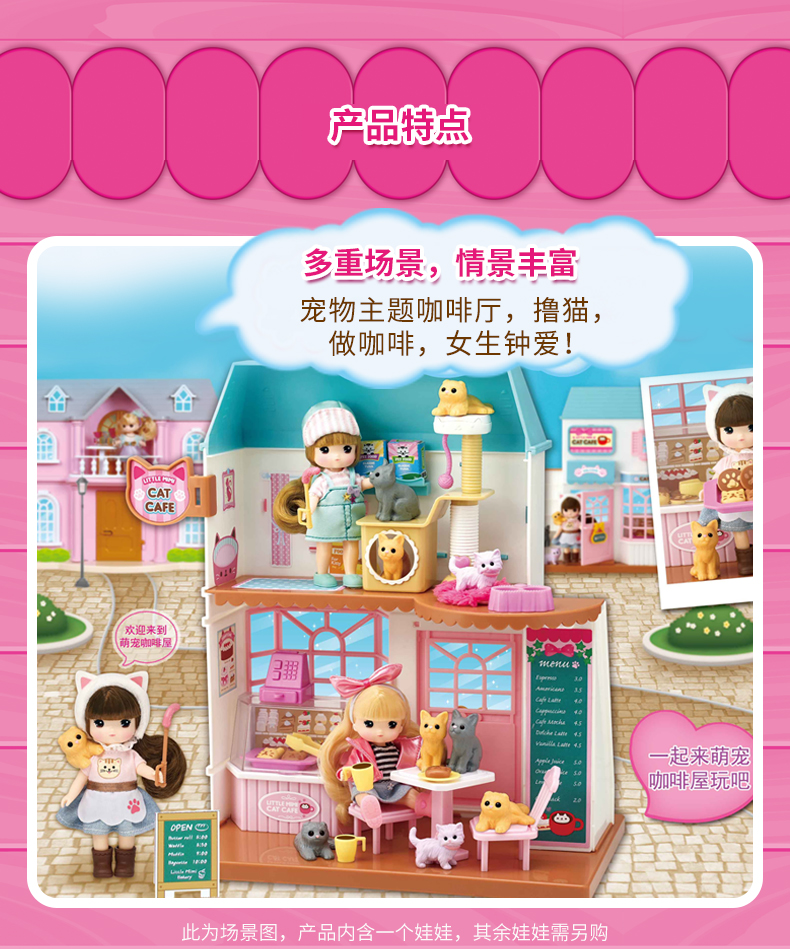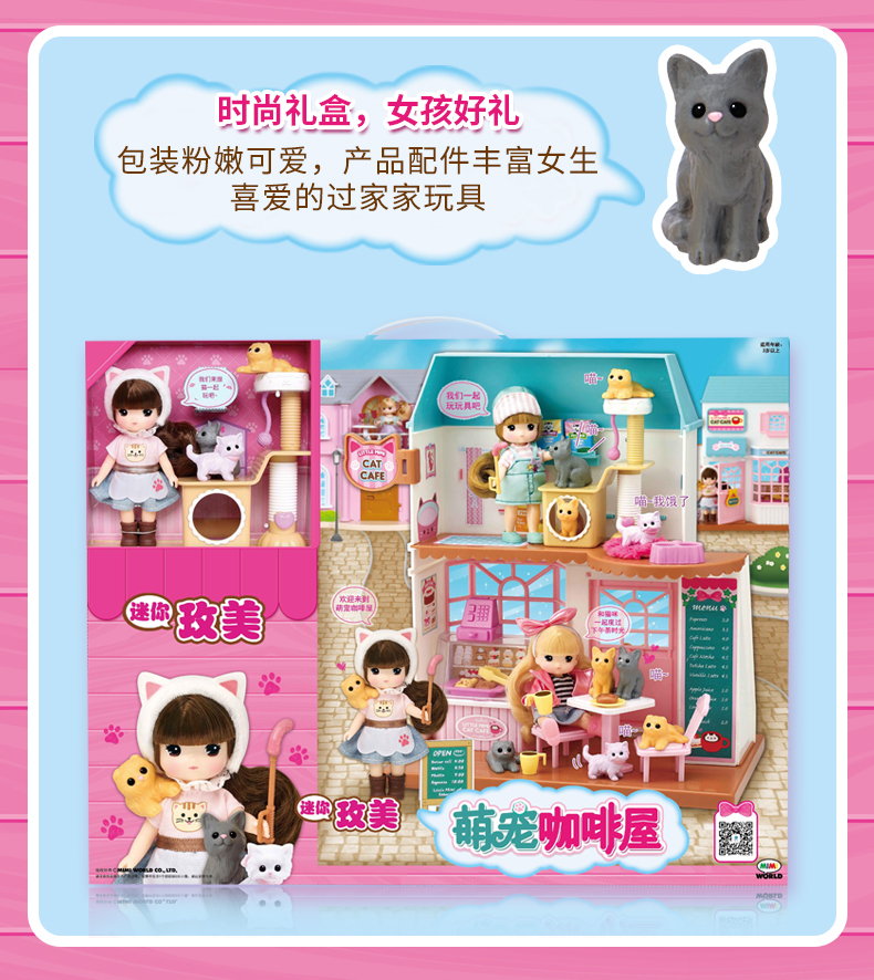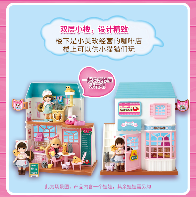 Mimiworld 迷你玫美萌宠咖啡屋 儿童玩具过家家洋娃娃套装礼物3岁+