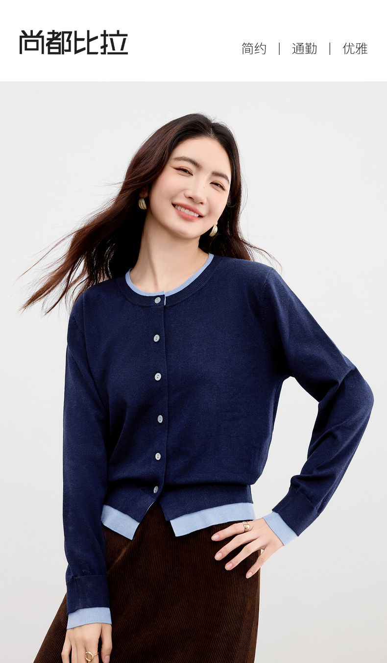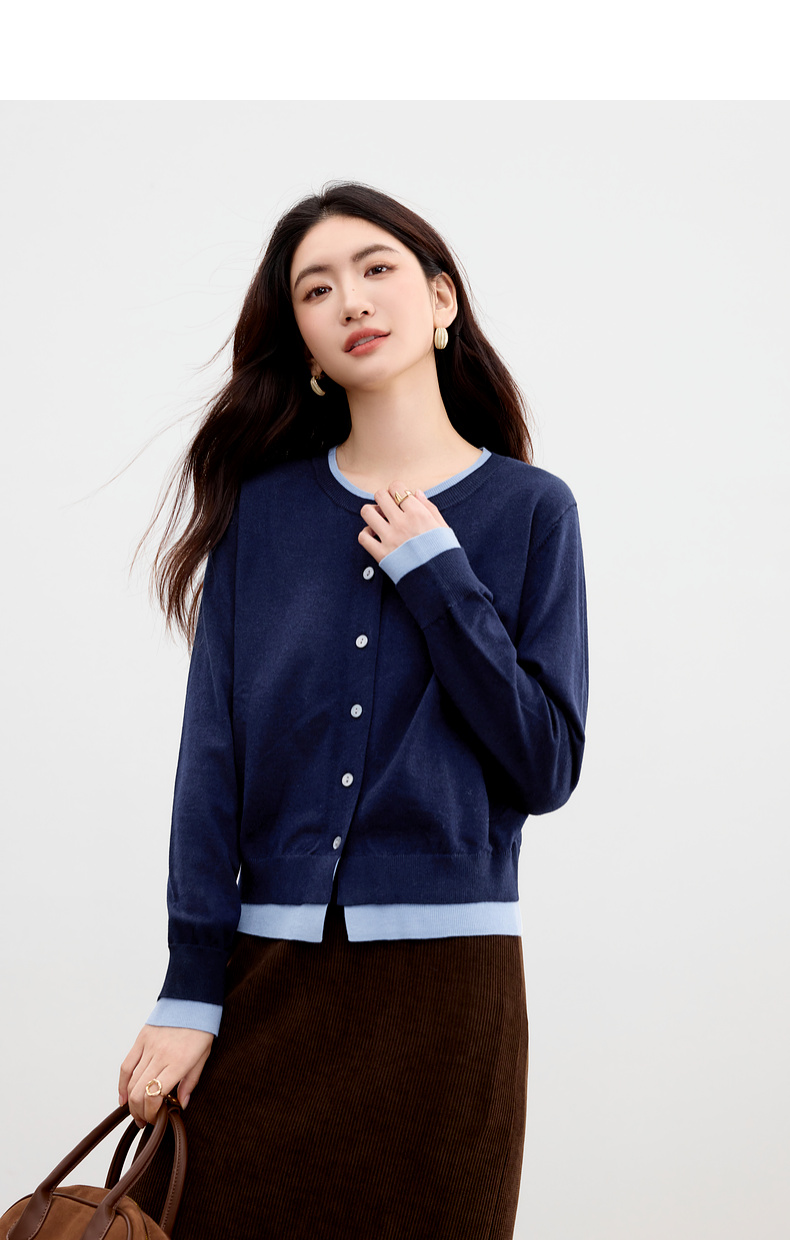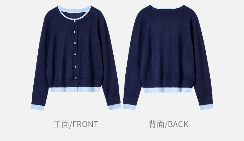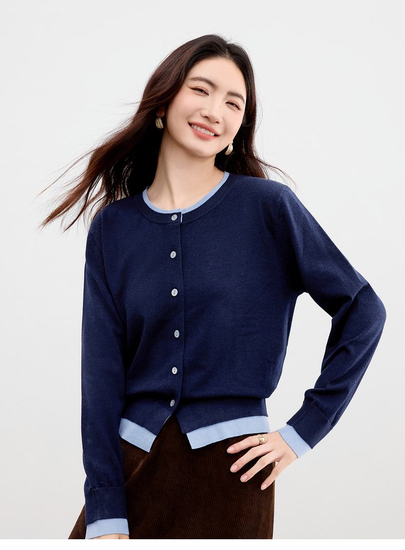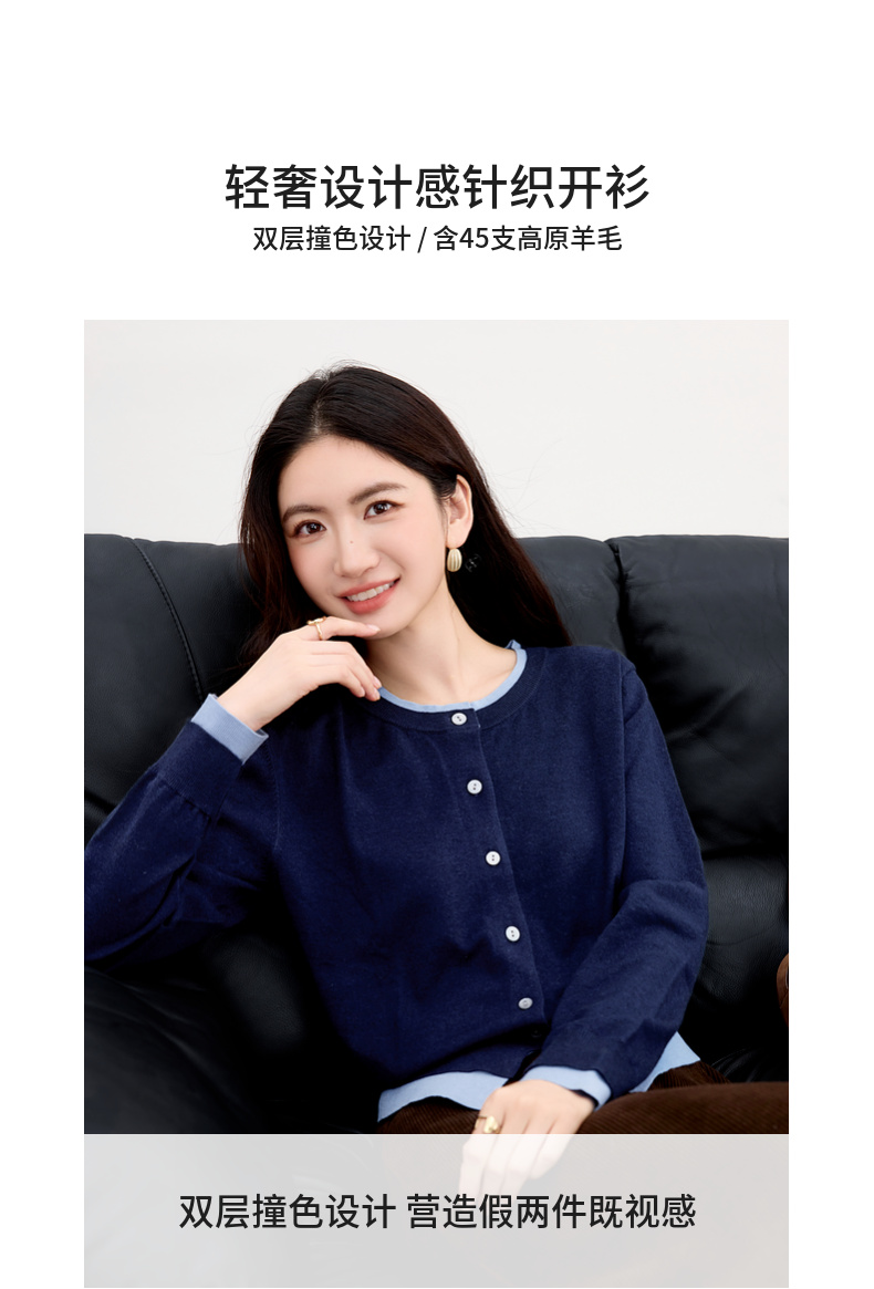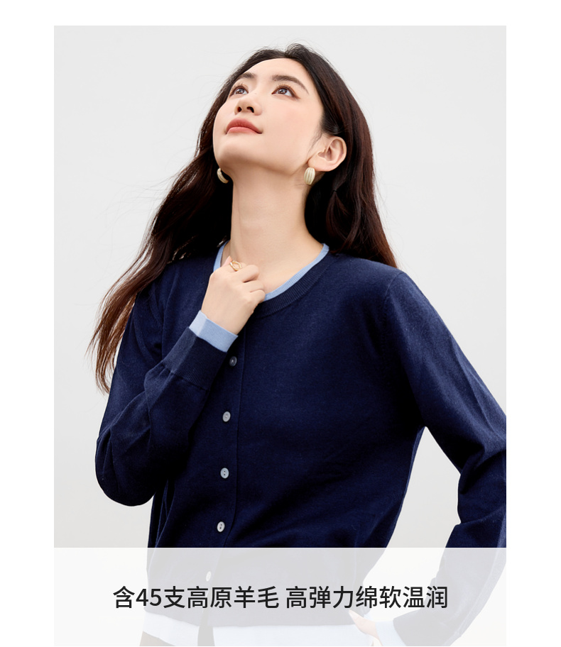 【内购】知识分子miu系撞色假两件含绵羊毛开衫针织衫减龄学院风长袖上衣-W53HD3276X