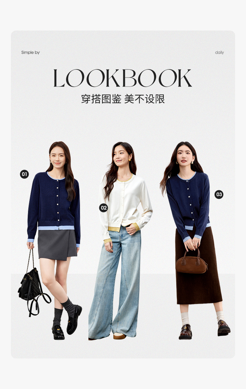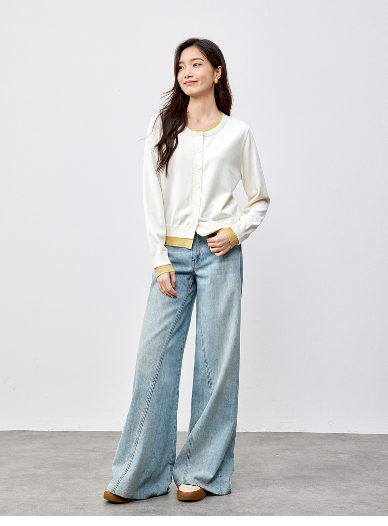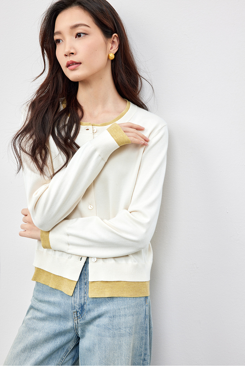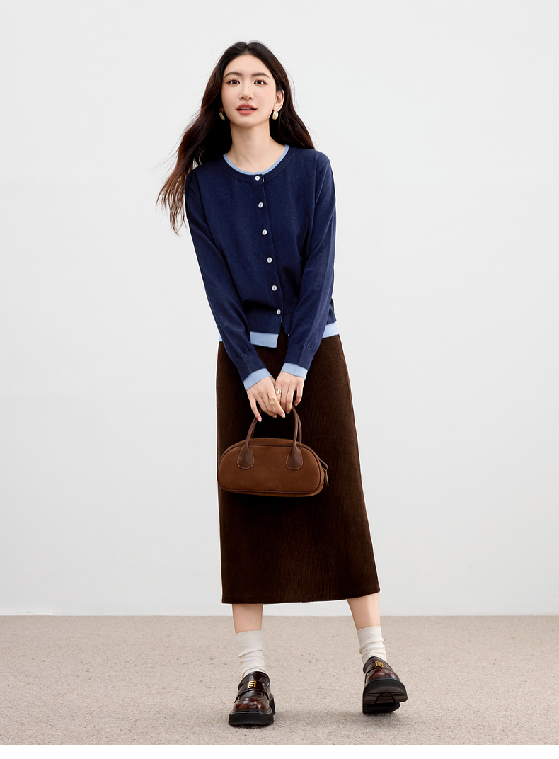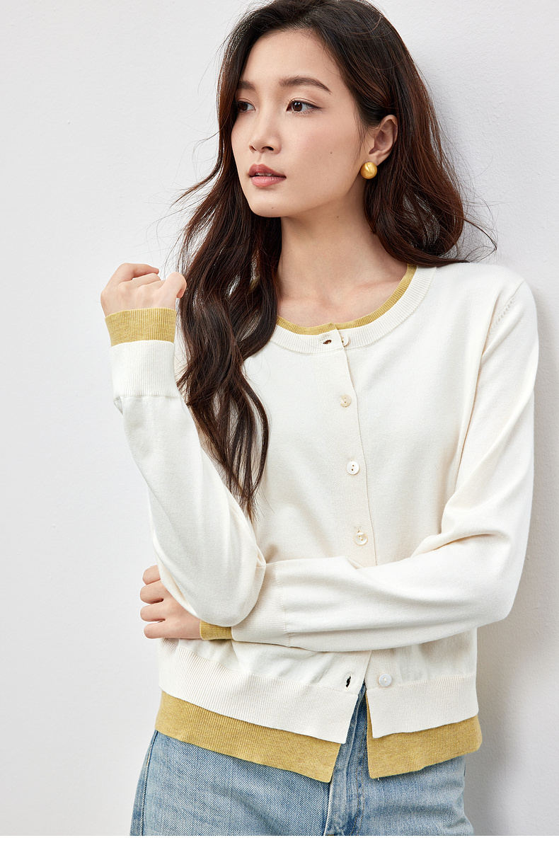 【内购】知识分子miu系撞色假两件含绵羊毛开衫针织衫减龄学院风长袖上衣-W53HD3276X