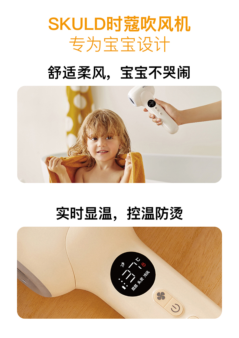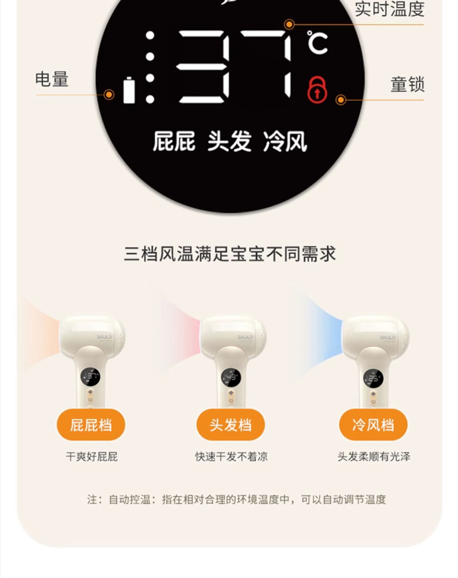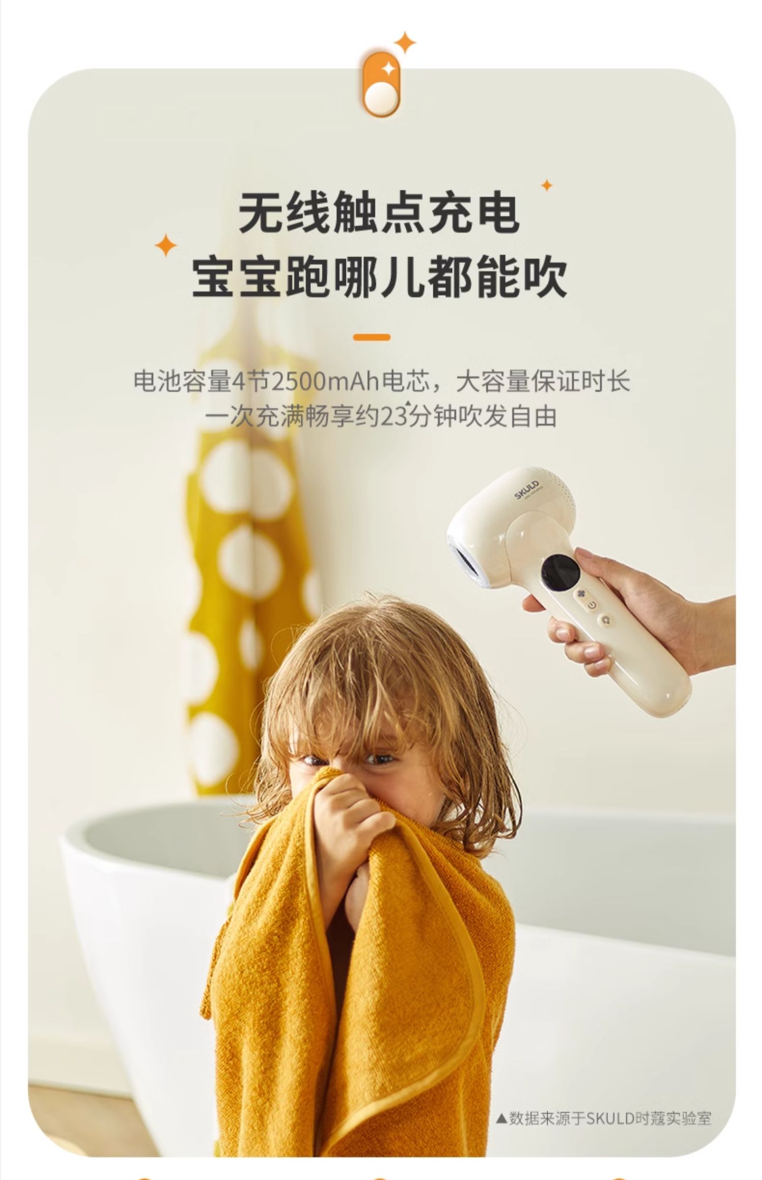 【云优选】SKULD时蔻婴儿吹风机无线宝宝儿童专用吹头发吹屁股电吹风D3