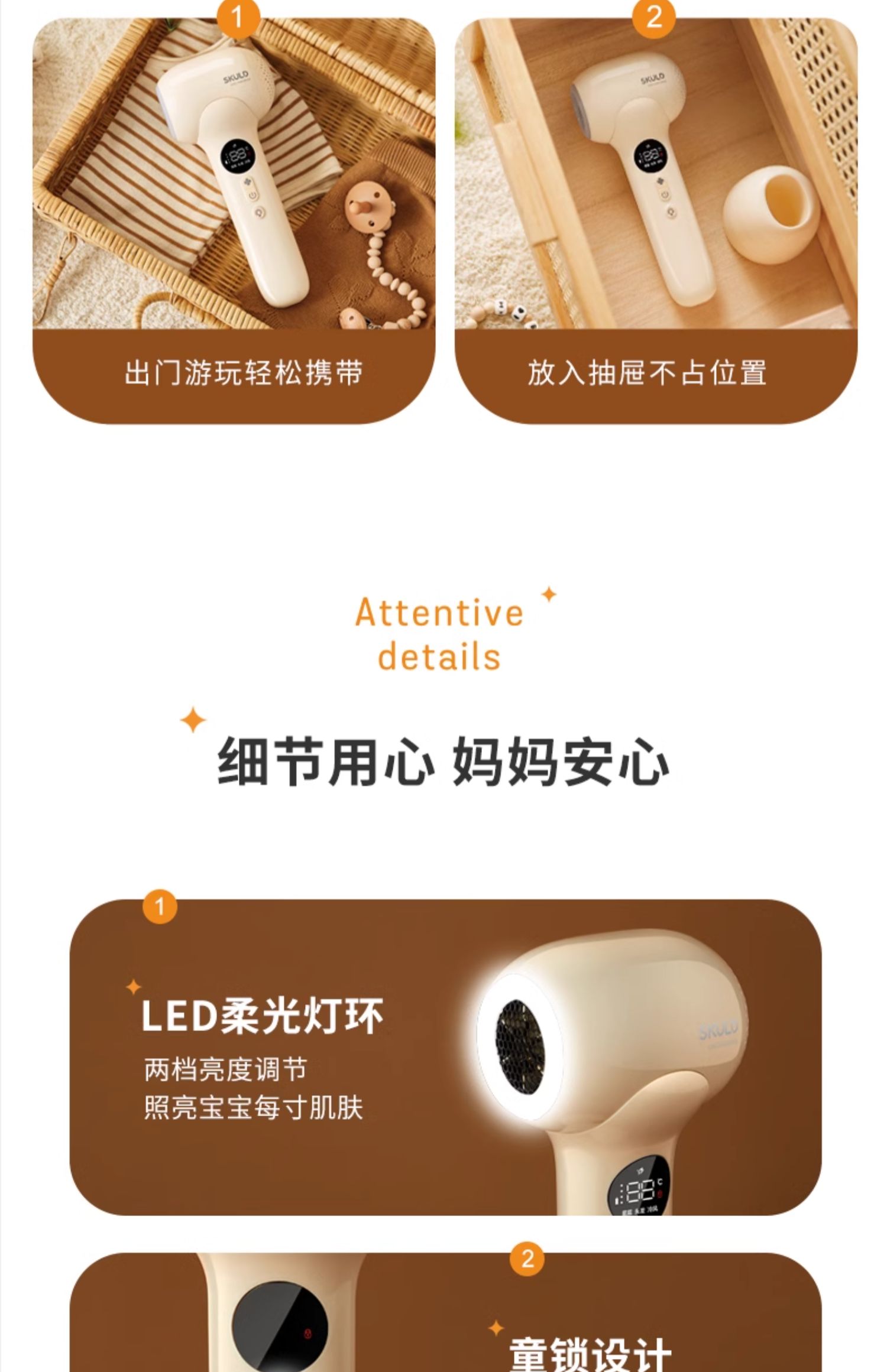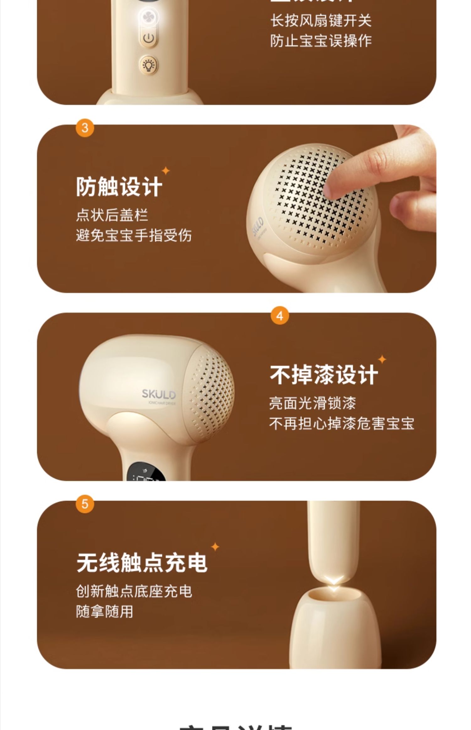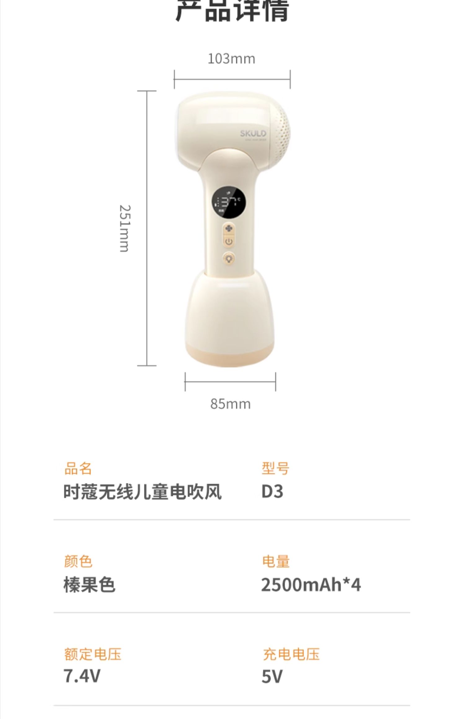 【云优选】SKULD时蔻婴儿吹风机无线宝宝儿童专用吹头发吹屁股电吹风D3