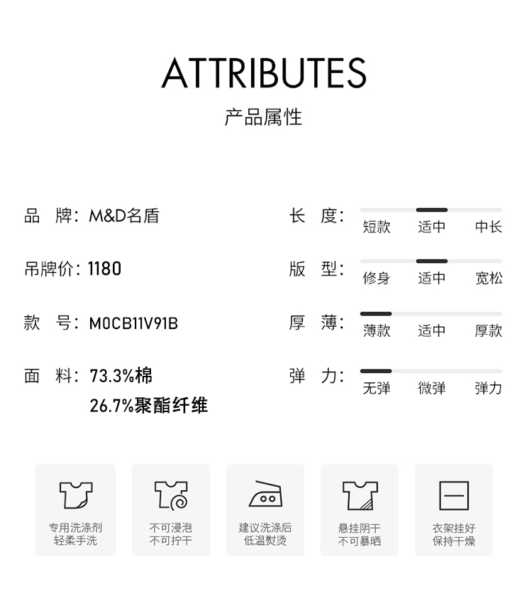 | 男装品牌: M&D/名盾 | 货号: M0CB11V91B |