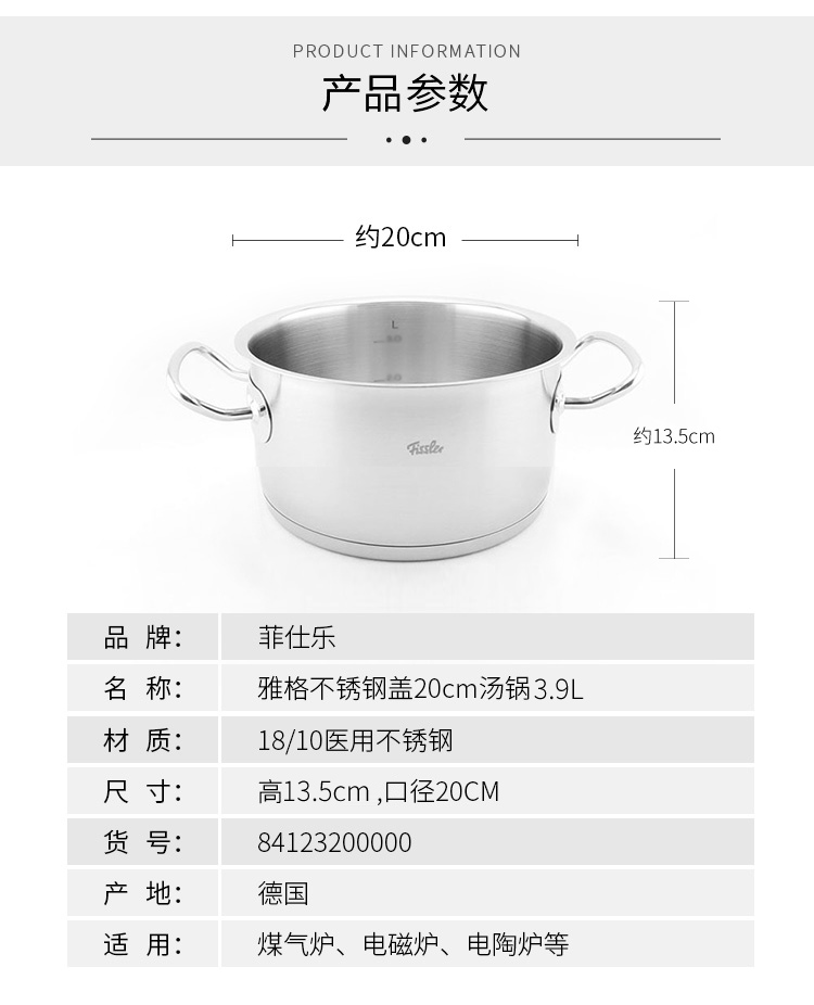 德国Fissler菲仕乐雅阁汤锅20cm 084123200000