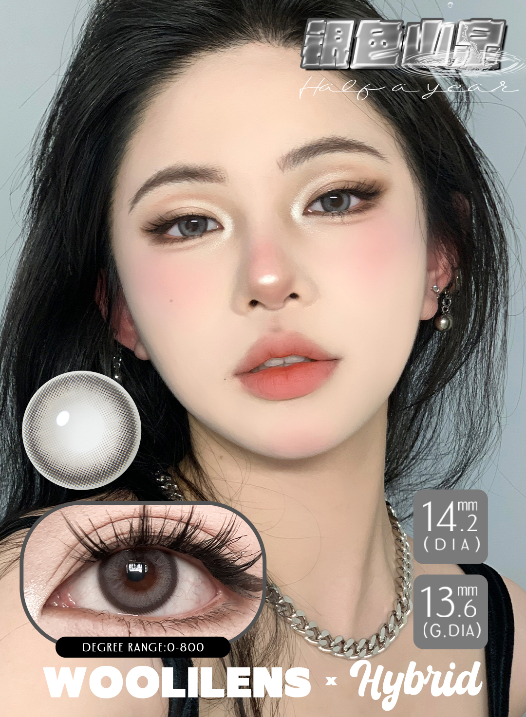 woolilens半年抛 钻石沙滩 棕/银色山泉 灰 14.2mm 非离子
