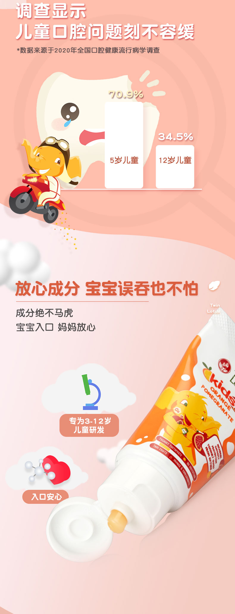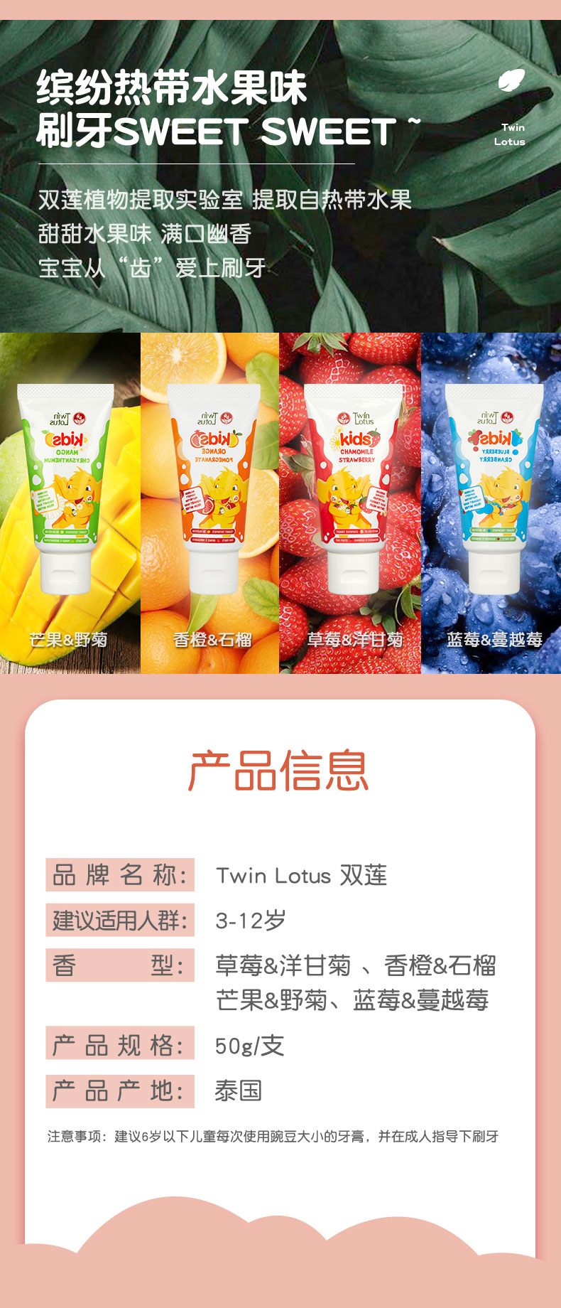双莲水果味儿童牙膏 50g*2支/4支 A-5486