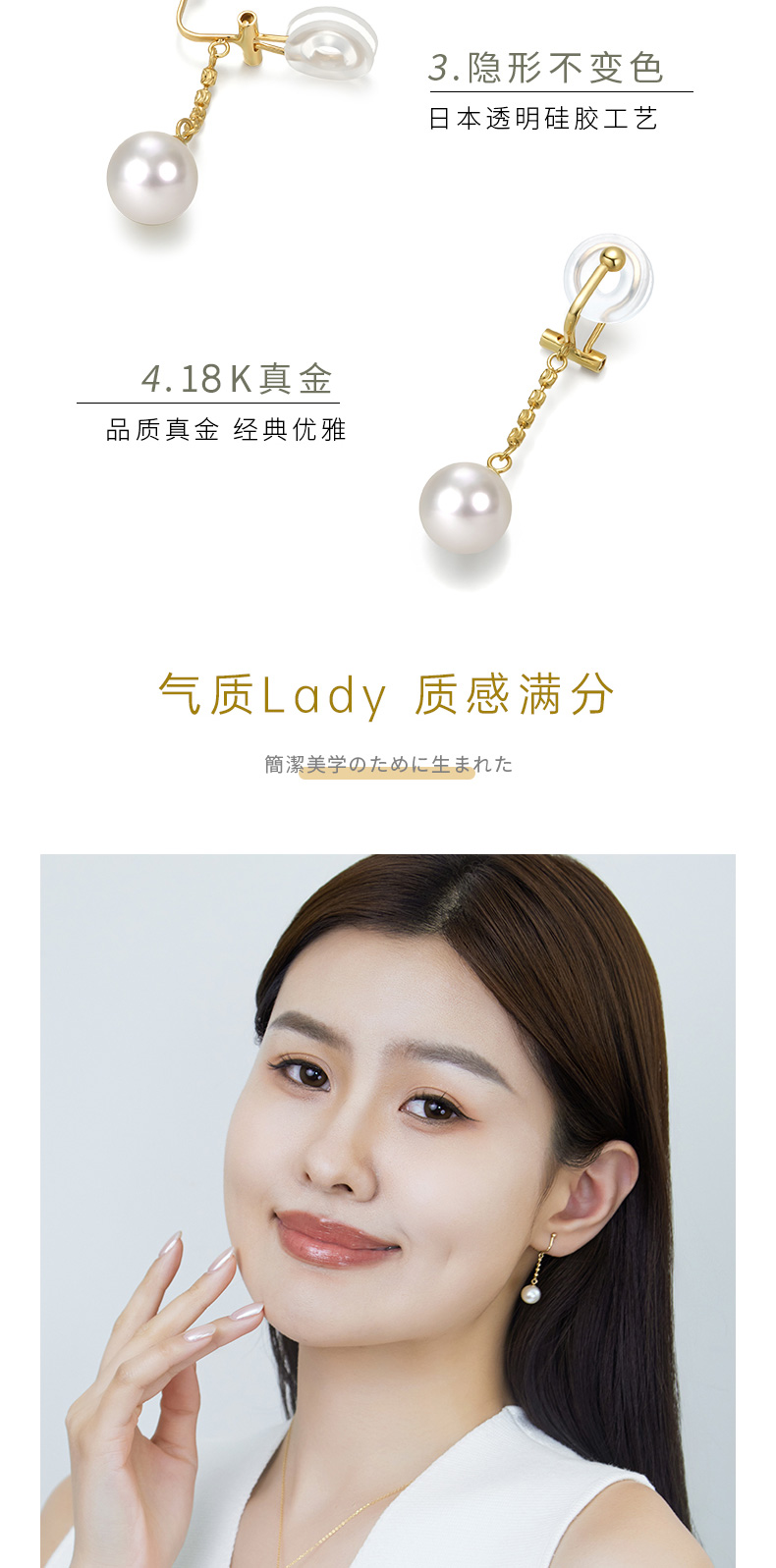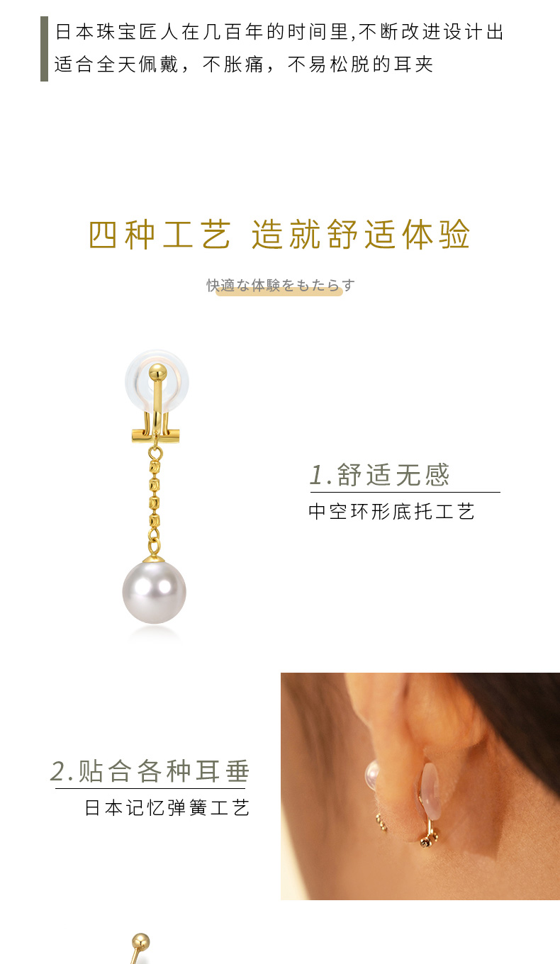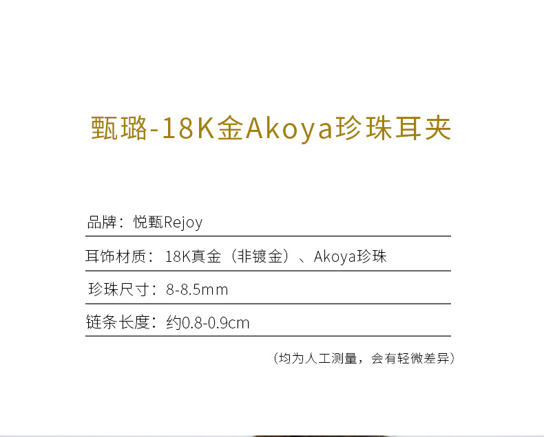 【天猫同款】悦甄 18k金Akoya珍珠耳夹 甄璐