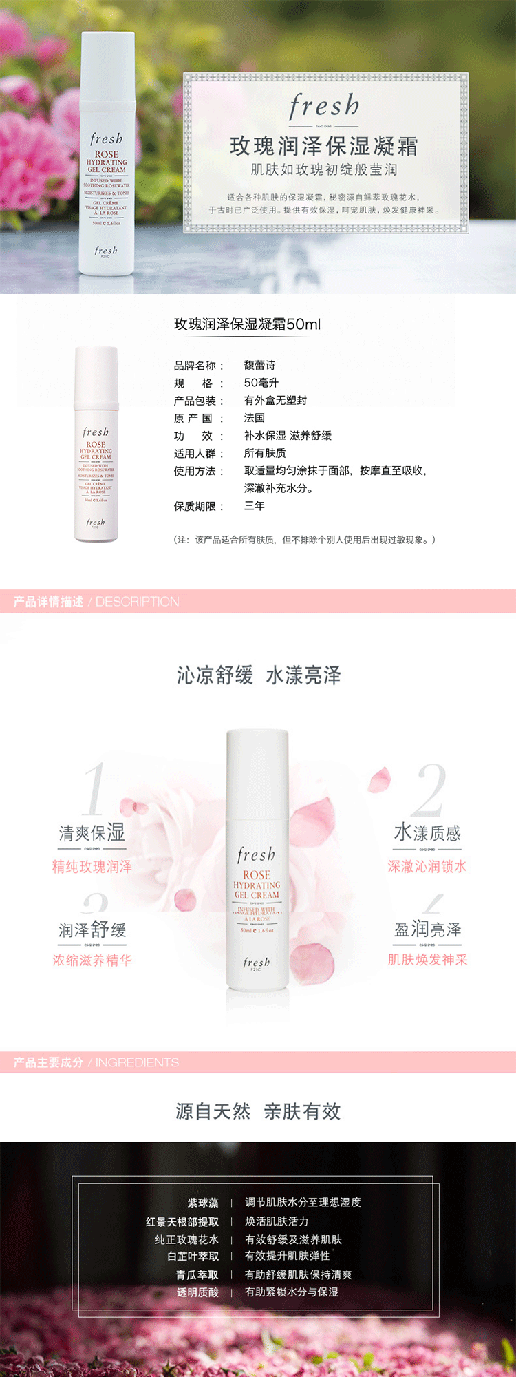 大陆 Fresh/馥蕾诗玫瑰润泽舒缓凝霜50ml