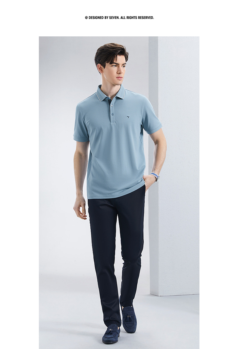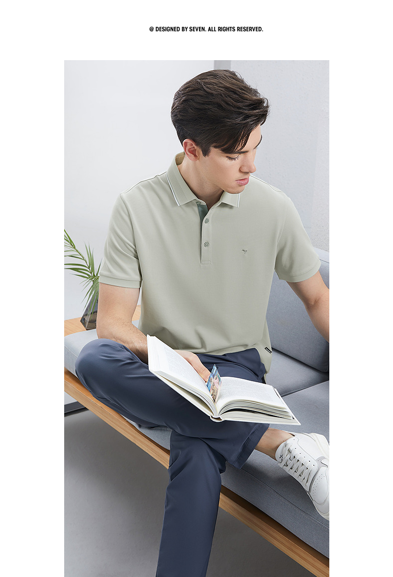 【不变形领】【防紫外线】柒牌短袖Polo衫男2024夏季新款商务百搭休闲翻领体恤 126T70100