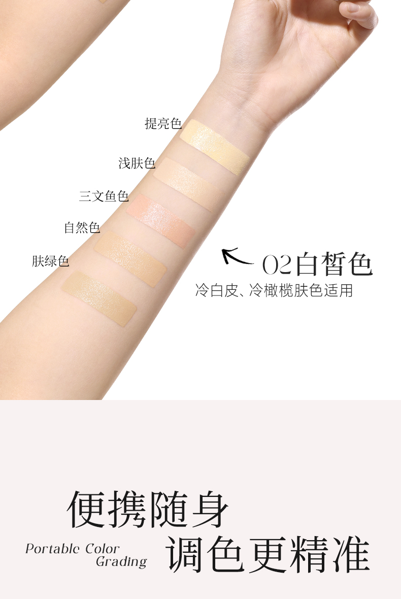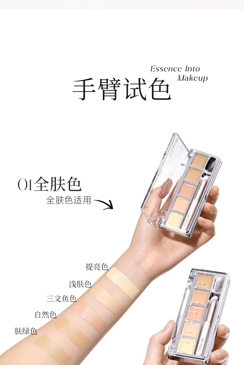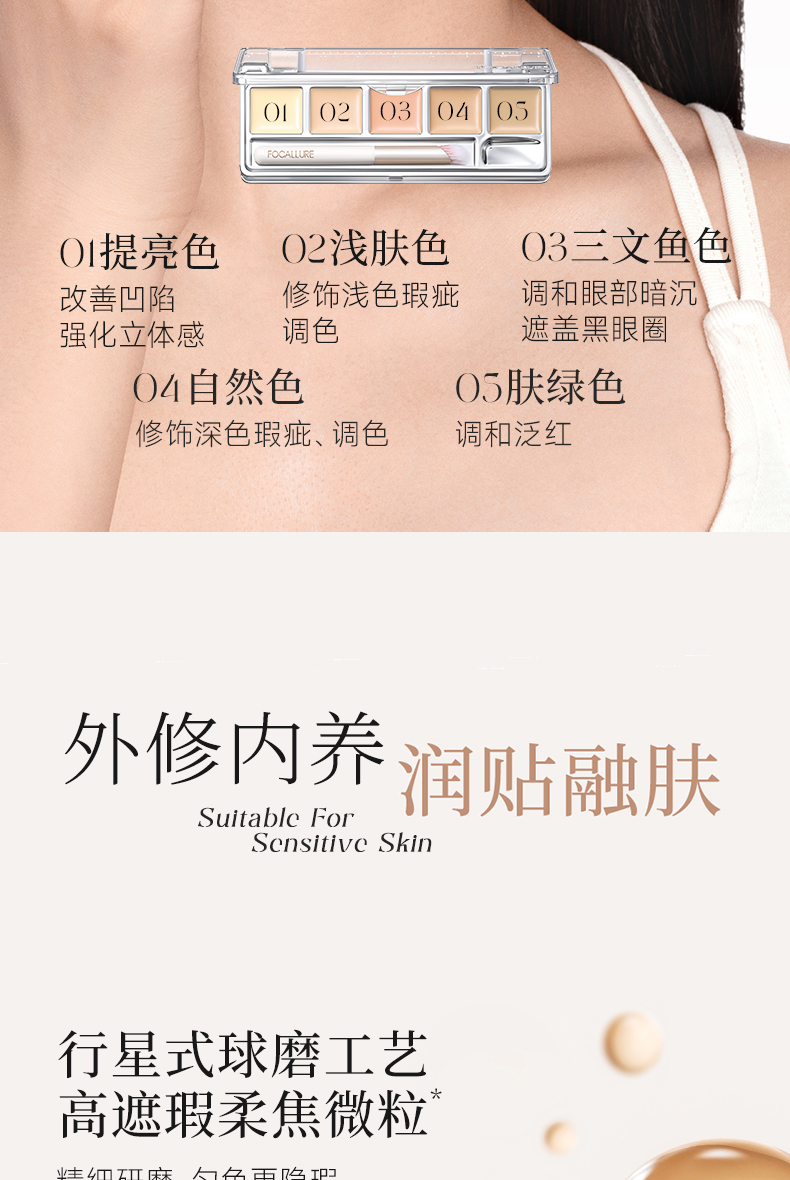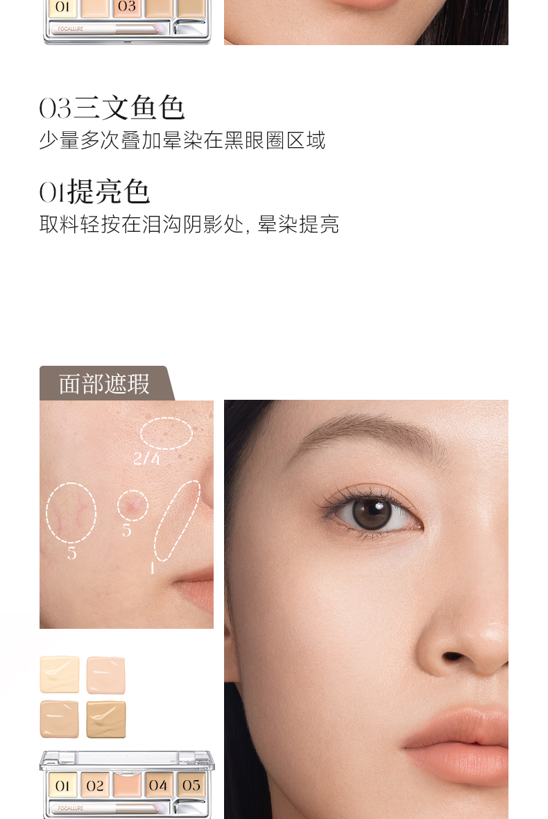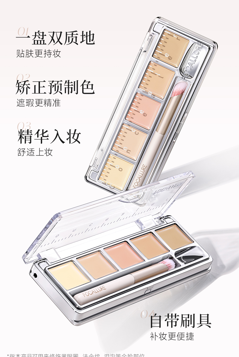 菲鹿儿五色尺子遮瑕盘脸部遮盖斑点痘痘黑眼圈持久不卡粉学生新手(配赠遮瑕刷)