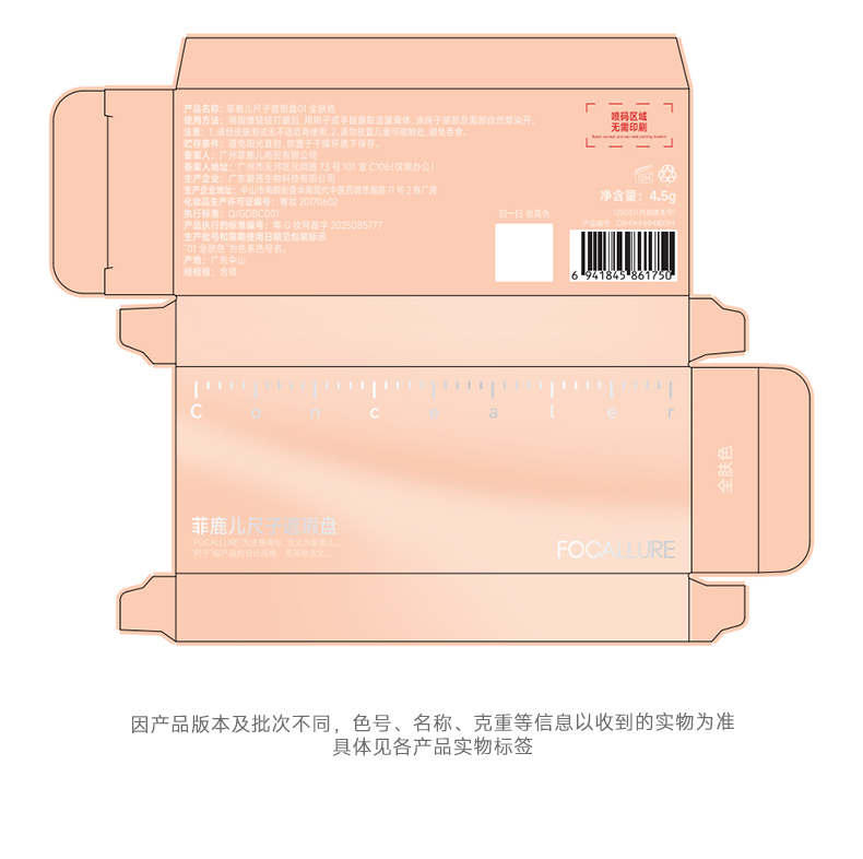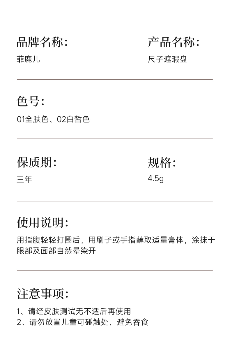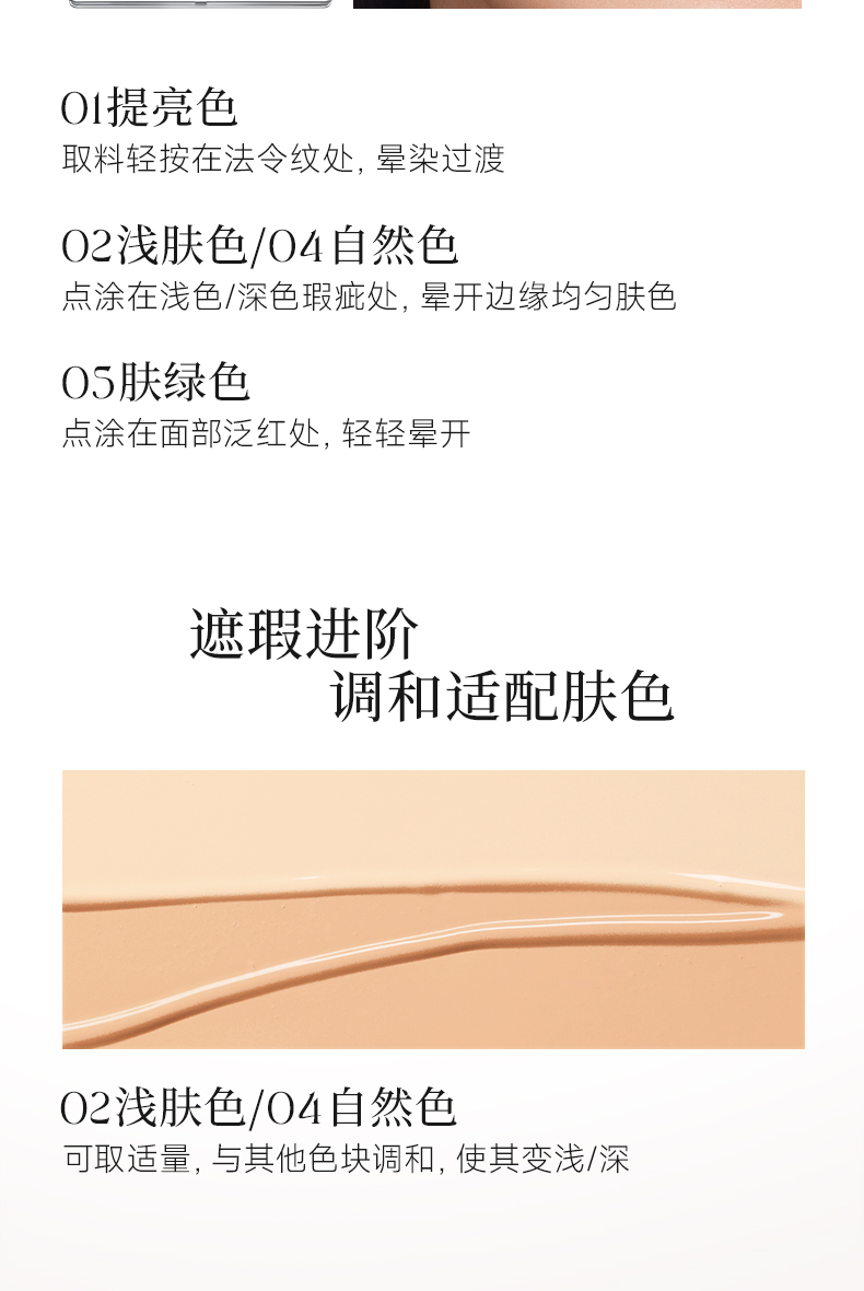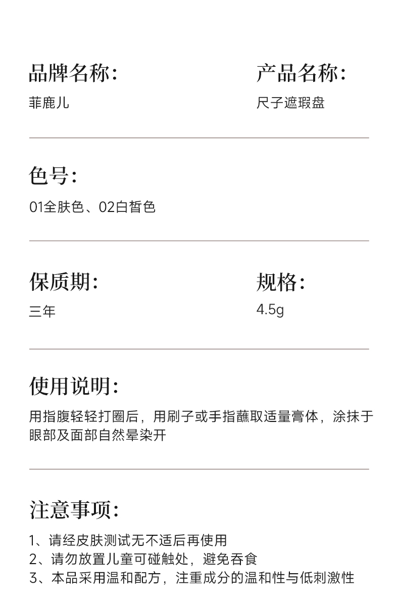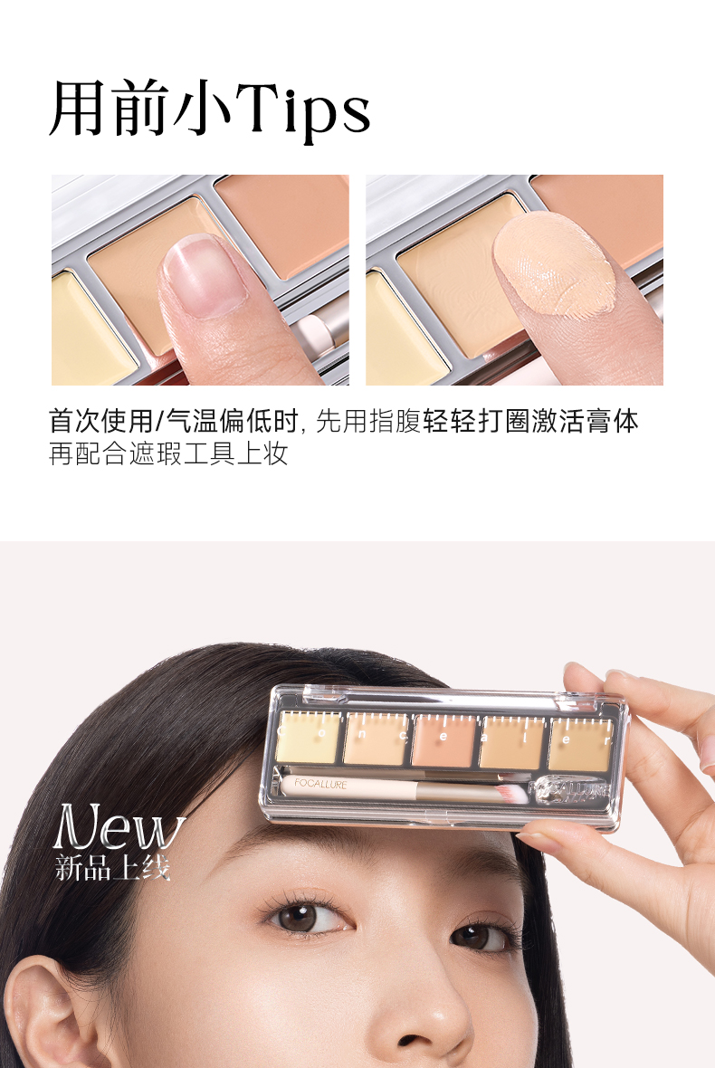 菲鹿儿五色尺子遮瑕盘脸部遮盖斑点痘痘黑眼圈持久不卡粉学生新手(配赠遮瑕刷)