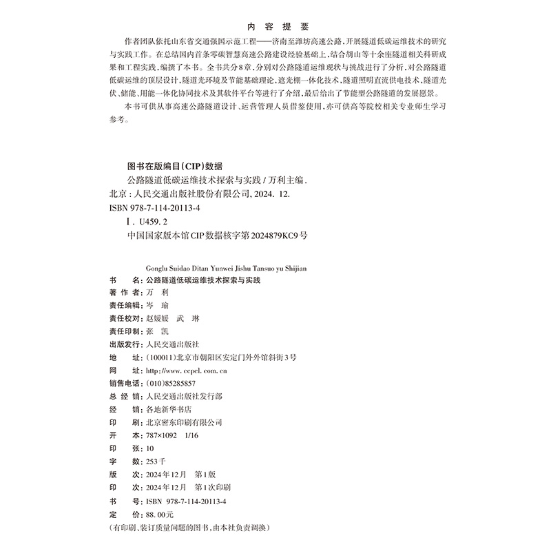 书名:公路隧道低碳运维技术探索与实践