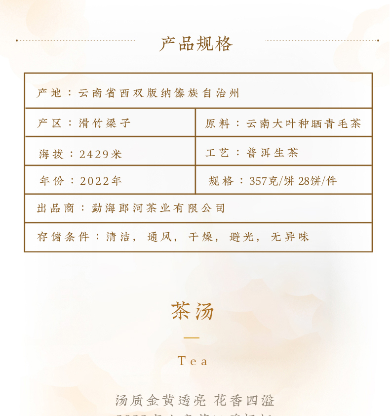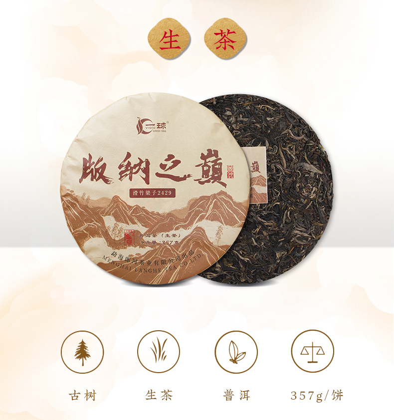 一球2022春茶版纳之巅普古树纯料普洱生茶饼