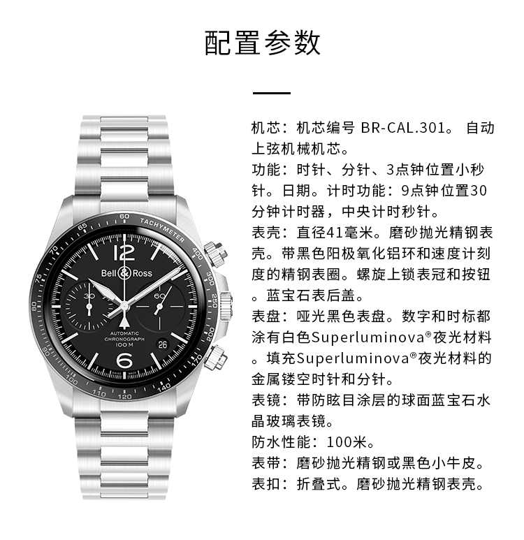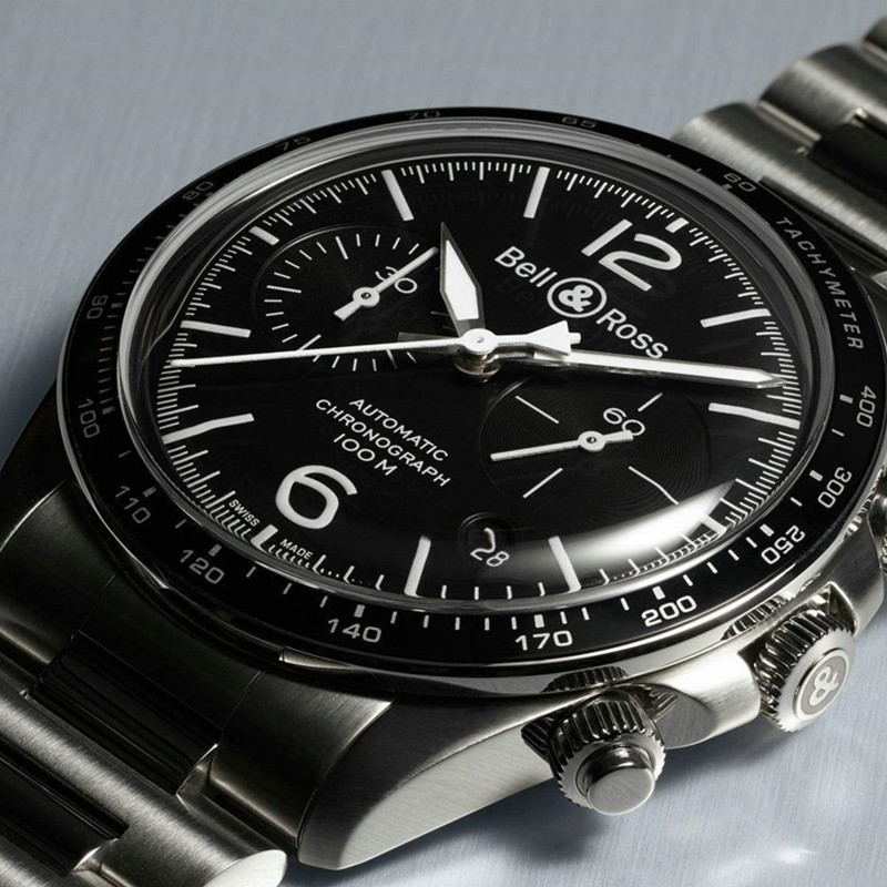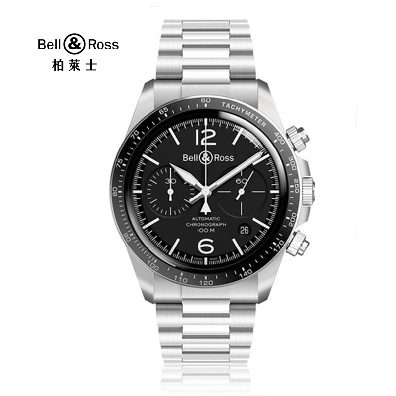 Bell & Ross 柏莱士 全自动机械手表男士黑色精钢计时腕表钢带小三针BRV294 BRV294-BL-ST/SST