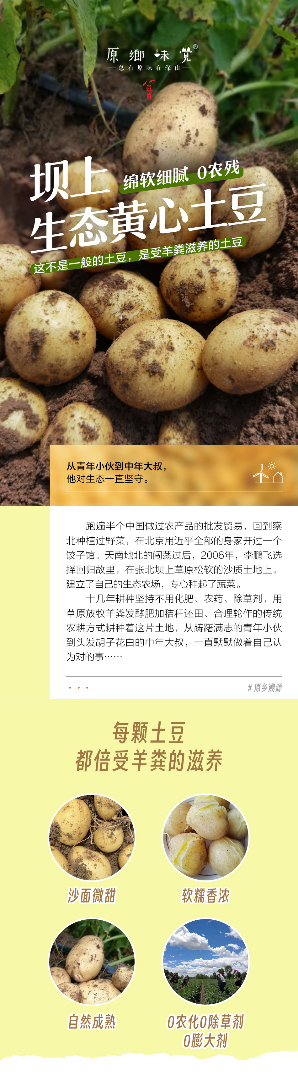 坝上生态羊粪土豆,黄心土豆(基地直发-顺丰包邮)| 2.5kg,来自河北张家口,生产者:李鹏飞【合作生产,公平贸易】