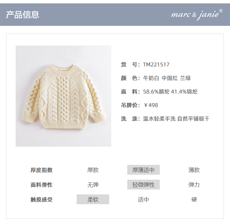 【柔蓝绒】马克珍妮秋冬新款 男女童纯色复古针织毛衣221517