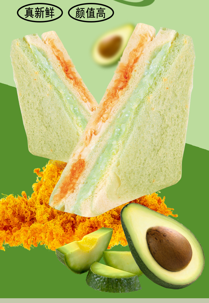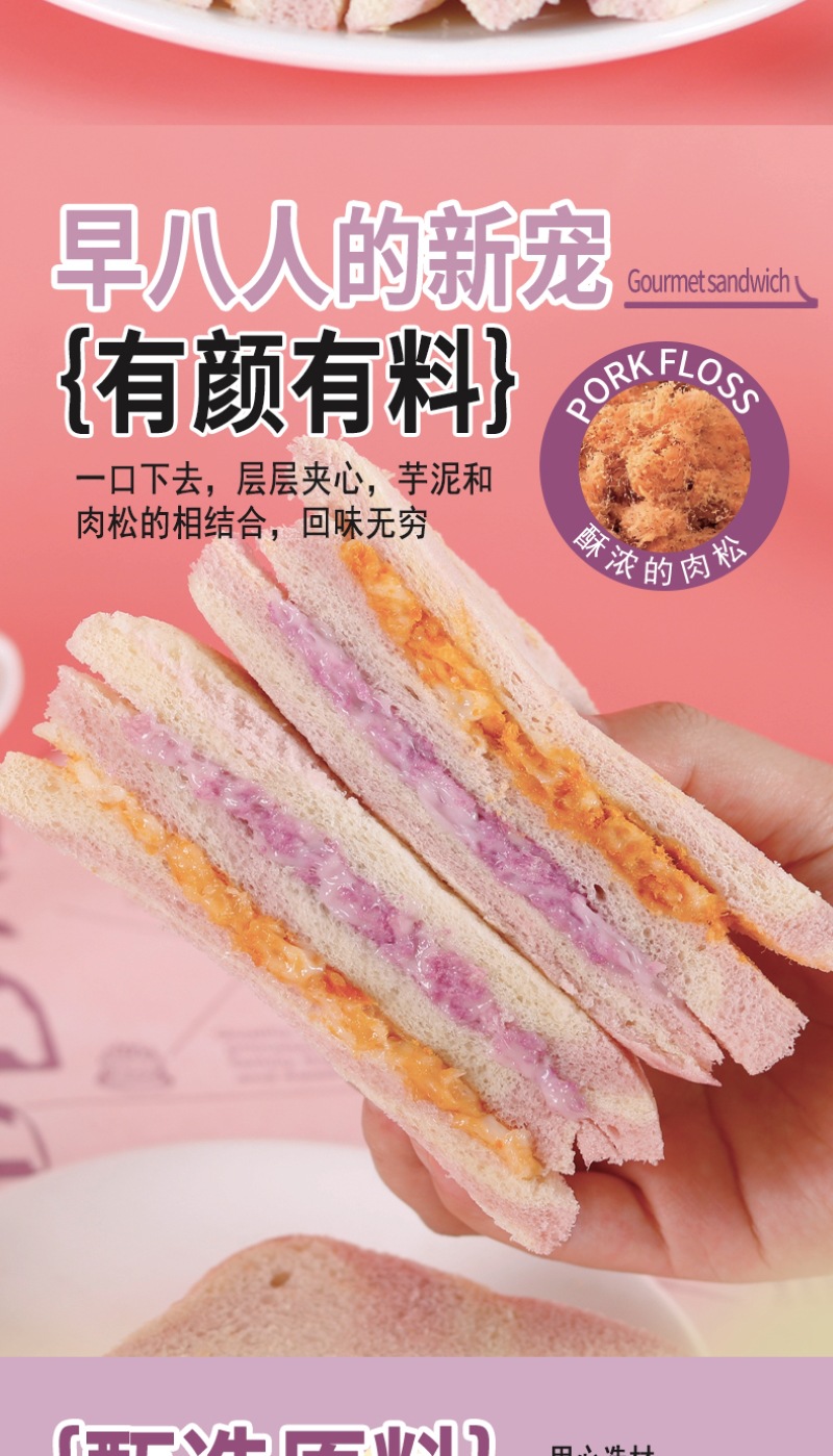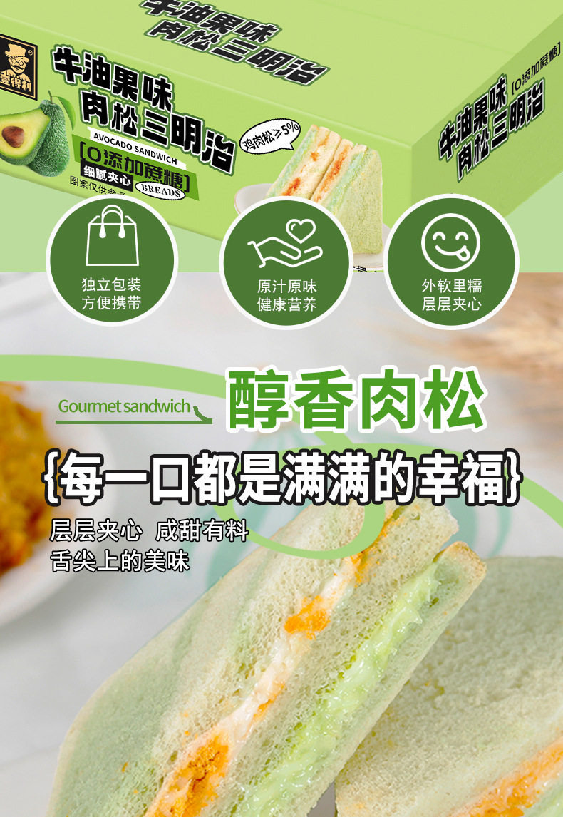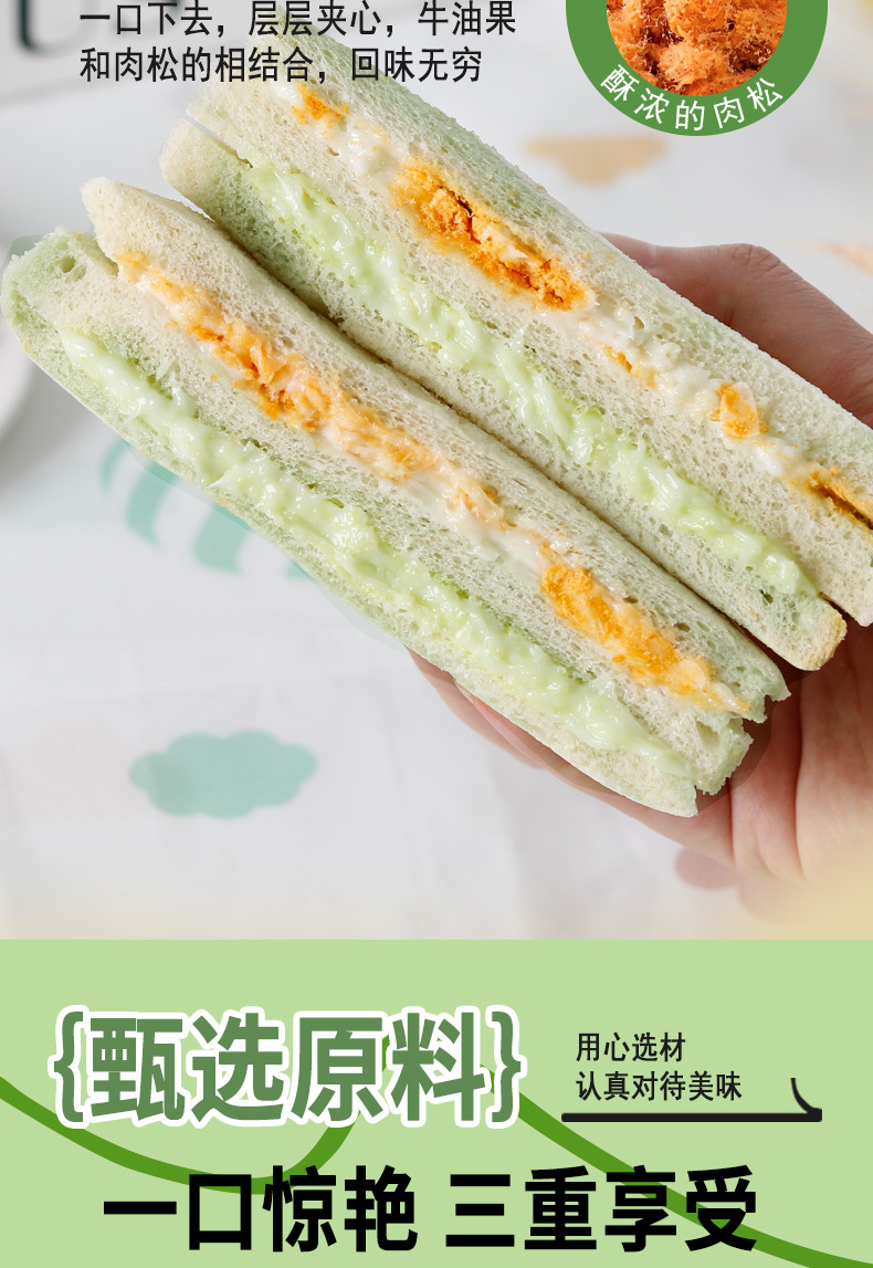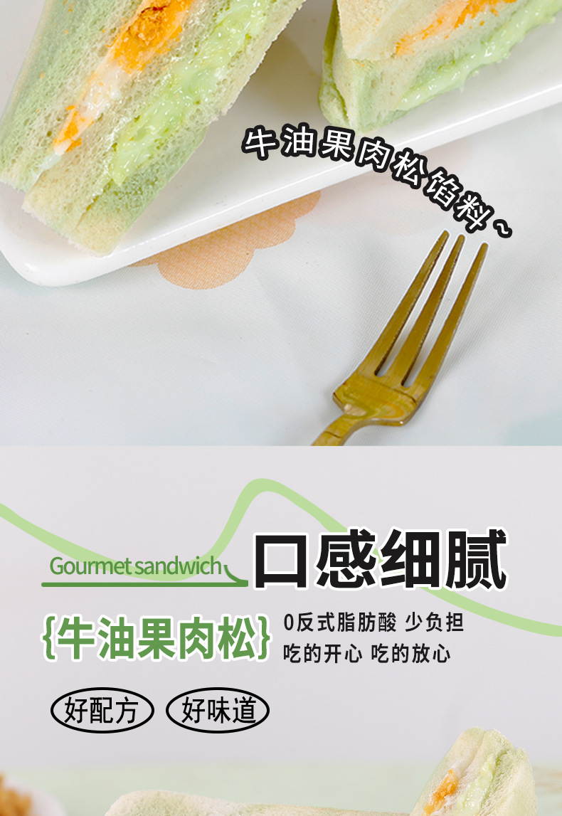 【健康营养❗️芋泥牛油果肉松三明治】0反式脂肪酸,丝滑果酱 饱满肉松,一口下去幸福满满!沙拉无边吐司网红学生早餐面包办公食品