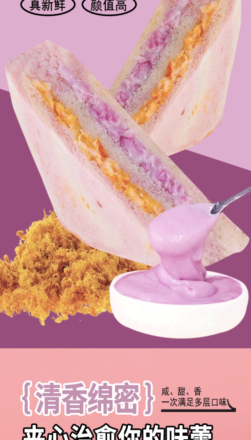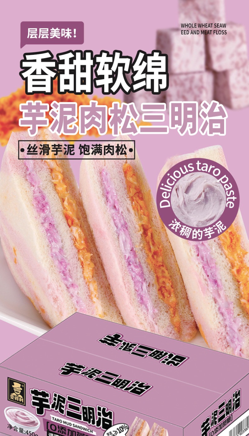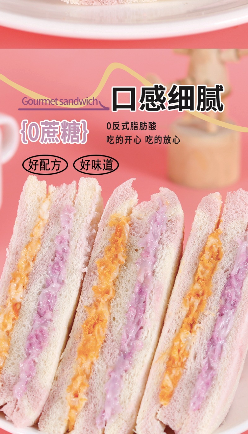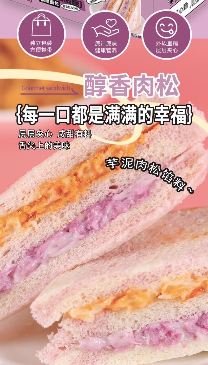 【健康营养❗️芋泥牛油果肉松三明治】0反式脂肪酸,丝滑果酱 饱满肉松,一口下去幸福满满!沙拉无边吐司网红学生早餐面包办公食品