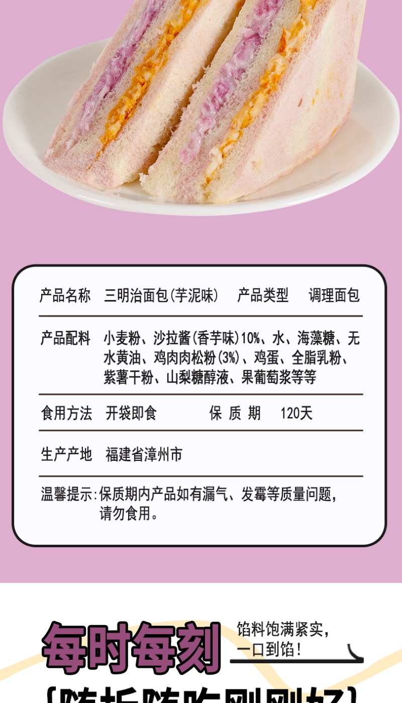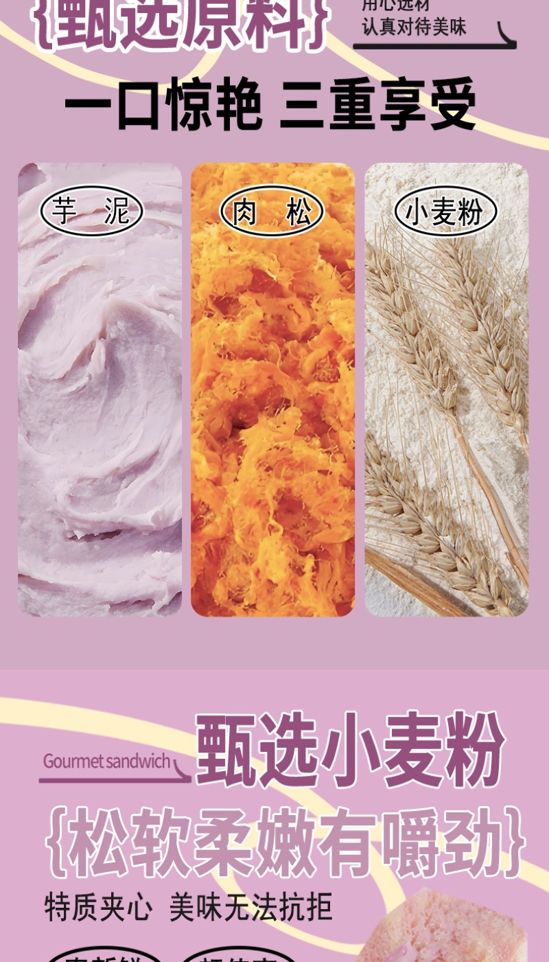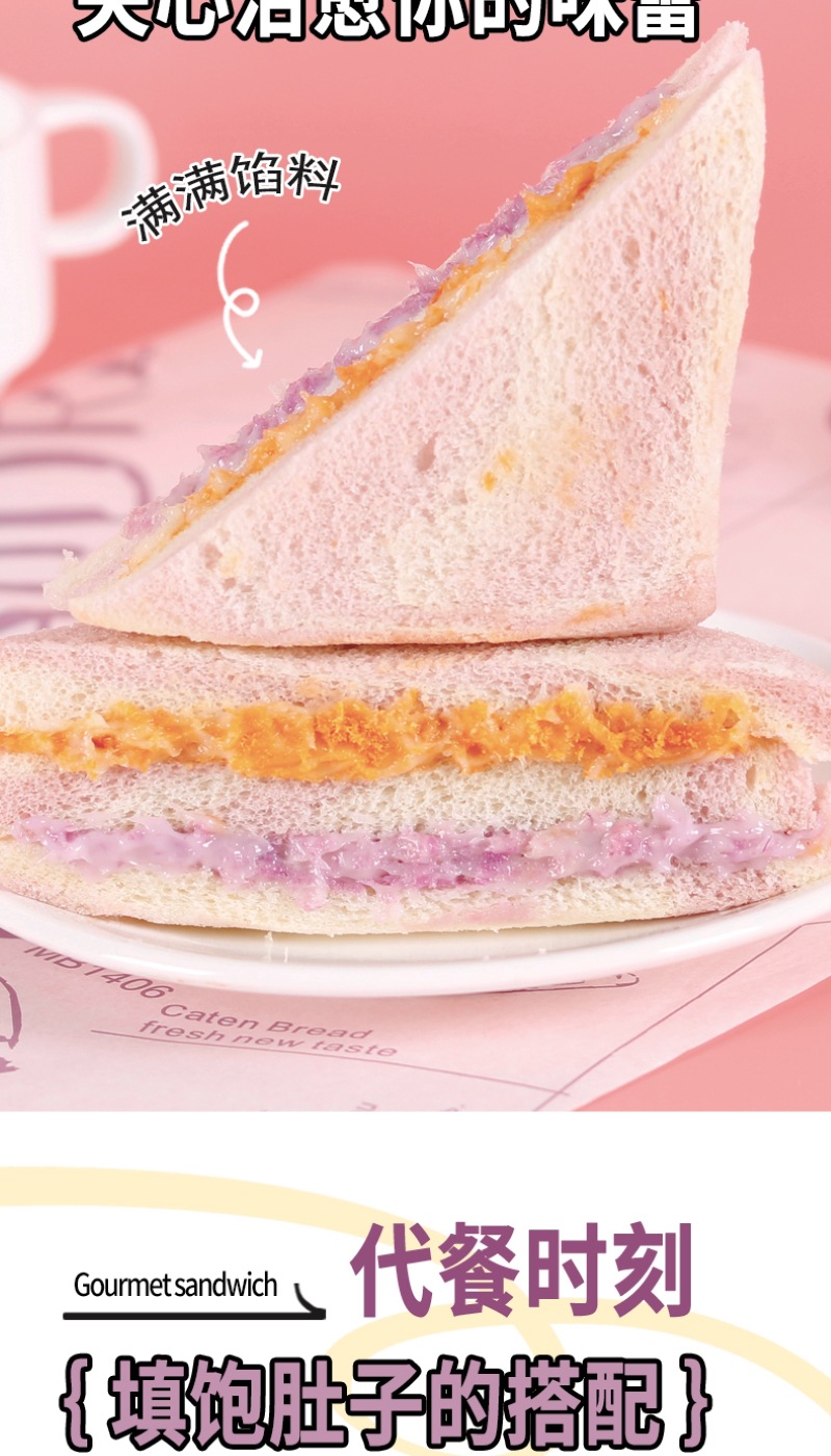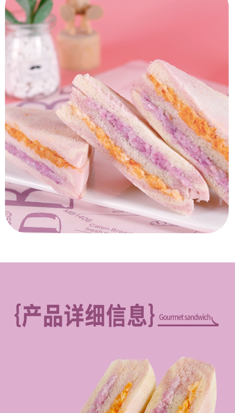 【健康营养❗️芋泥牛油果肉松三明治】0反式脂肪酸,丝滑果酱 饱满肉松,一口下去幸福满满!沙拉无边吐司网红学生早餐面包办公食品