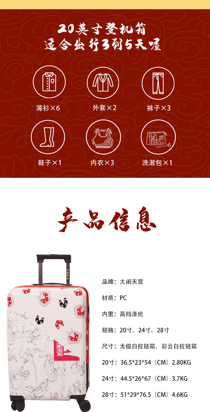 国潮新品 银座大闹天宫系列拉杆箱 行李箱 可登机20寸拉链箱A-9389L