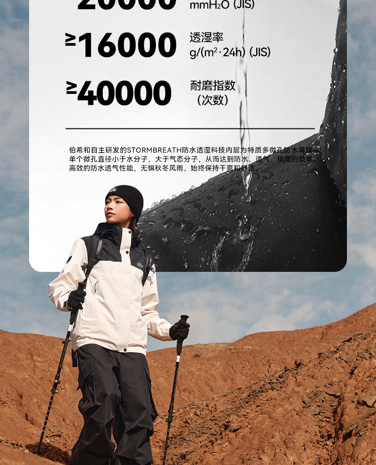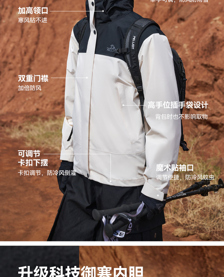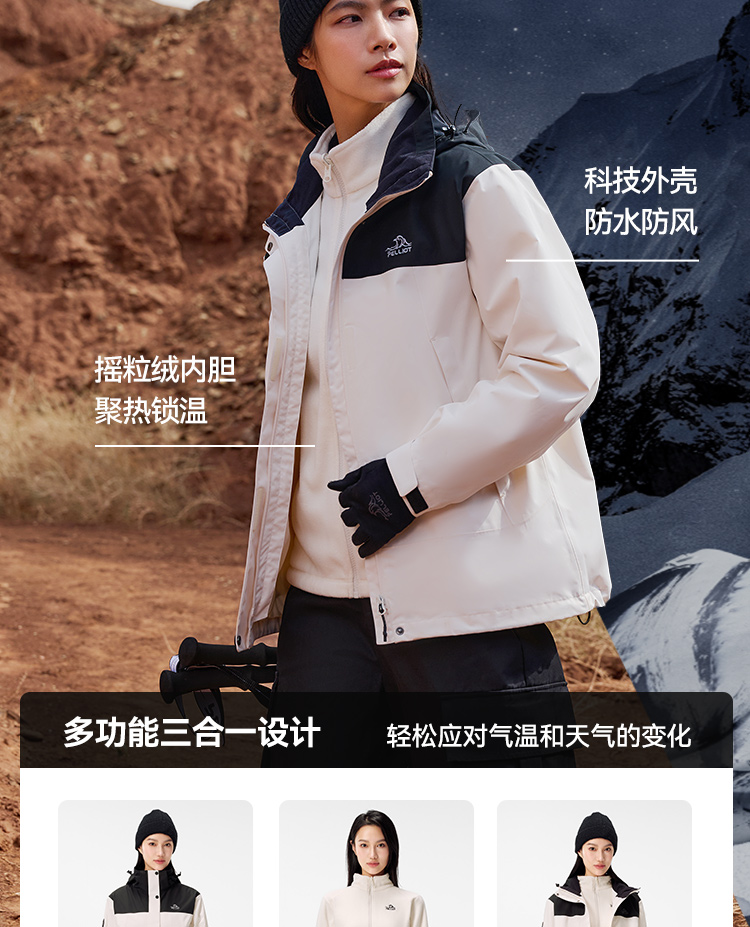 【原石】伯希和户外冲锋衣女2025新款三合一防风防雨登山服外套男