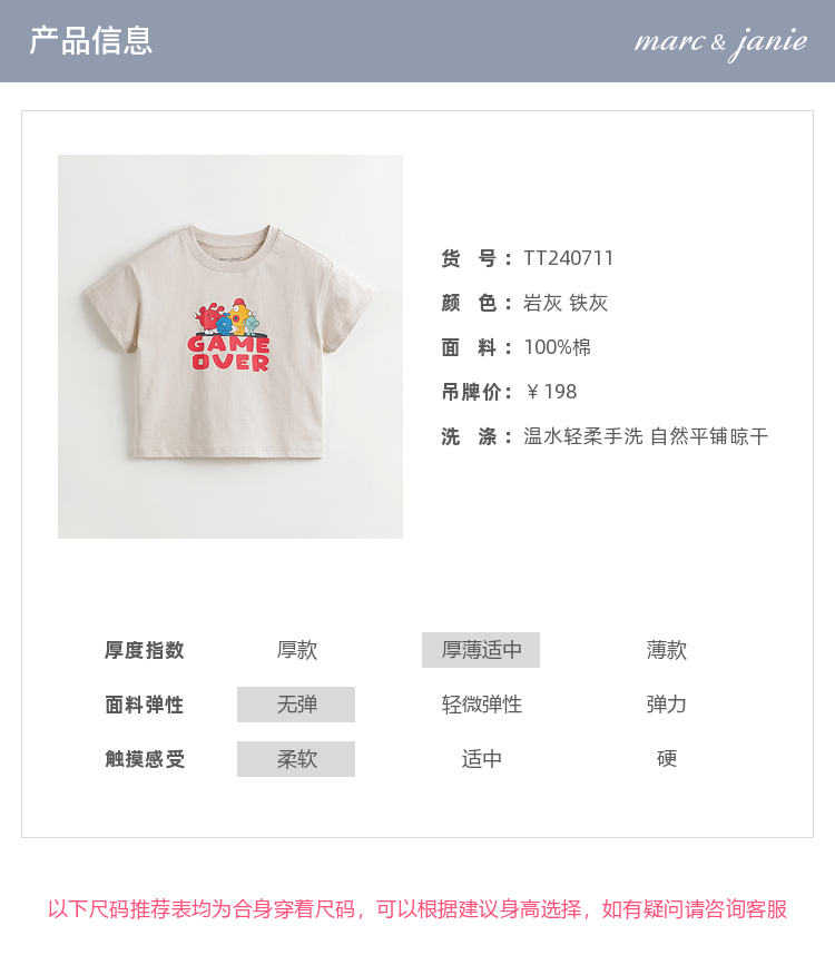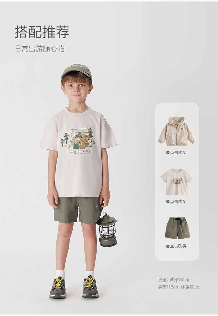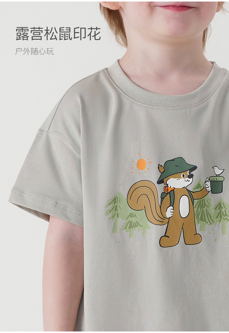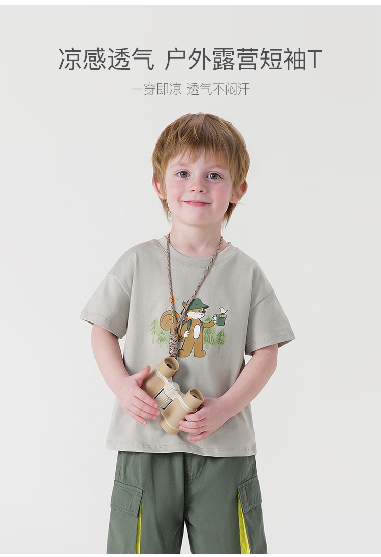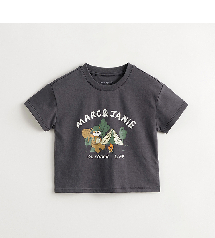 [凉感透气]马克珍妮男童城市户外松鼠短袖T恤宝宝夏装新款240380