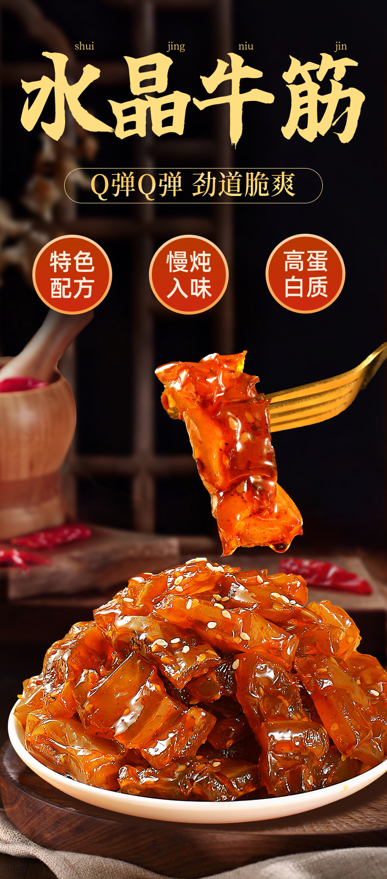 【限时特惠买一送一!内蒙古即食牛蹄筋】严选优质食材,8小时小火慢卤口口留香,卤味特产零食,香辣水晶板筋休闲食品L