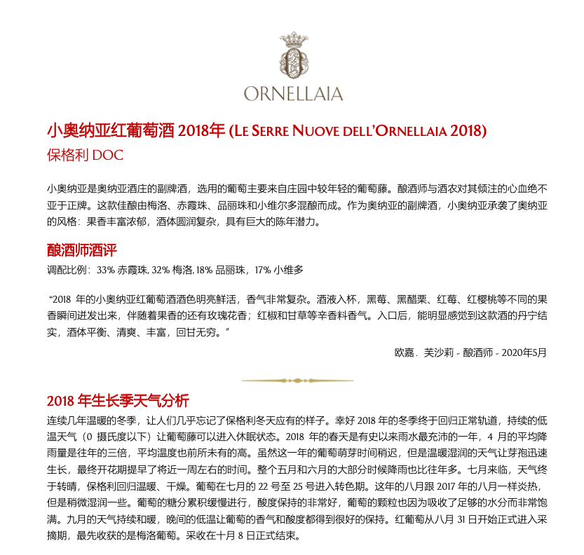 2014 奥纳亚酒庄乐赛瑞红葡萄酒 Le Serre Nuove dell'Ornellaia 750ml