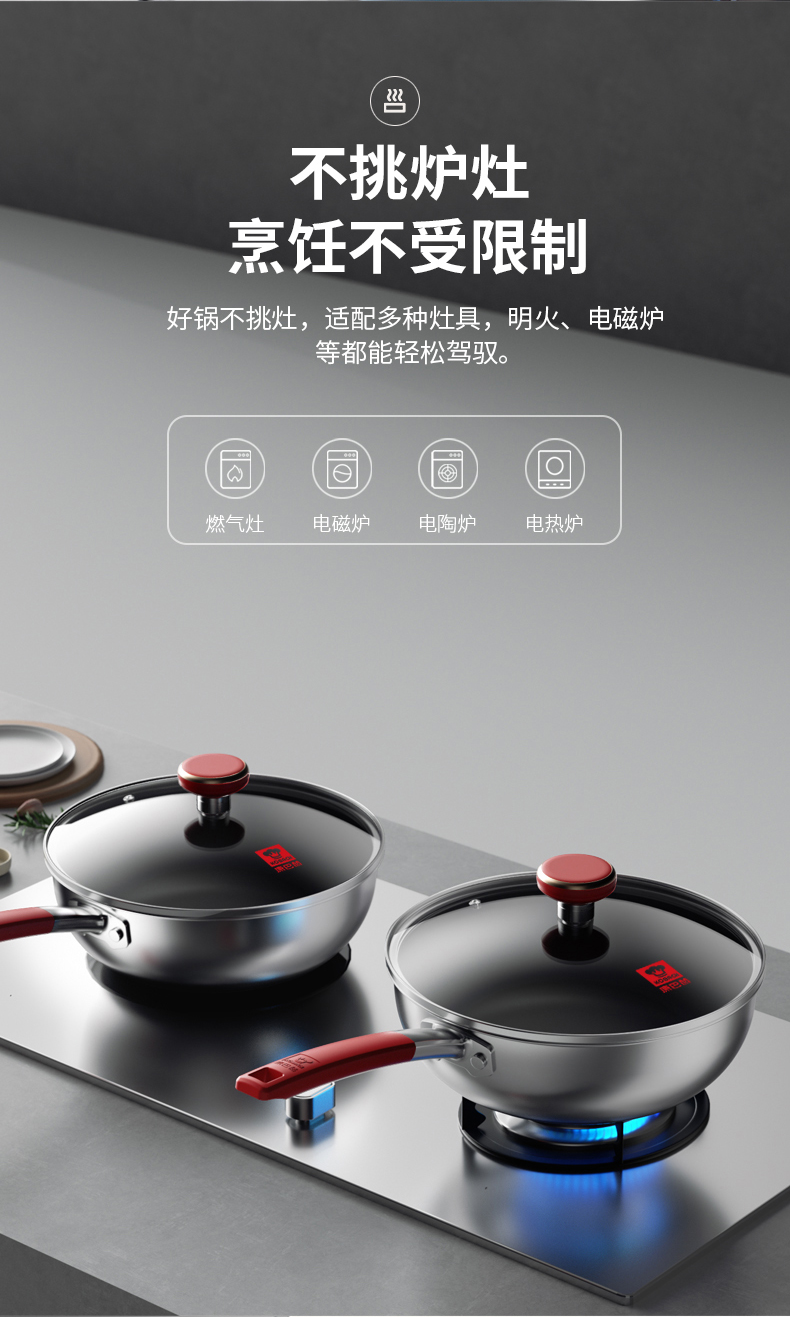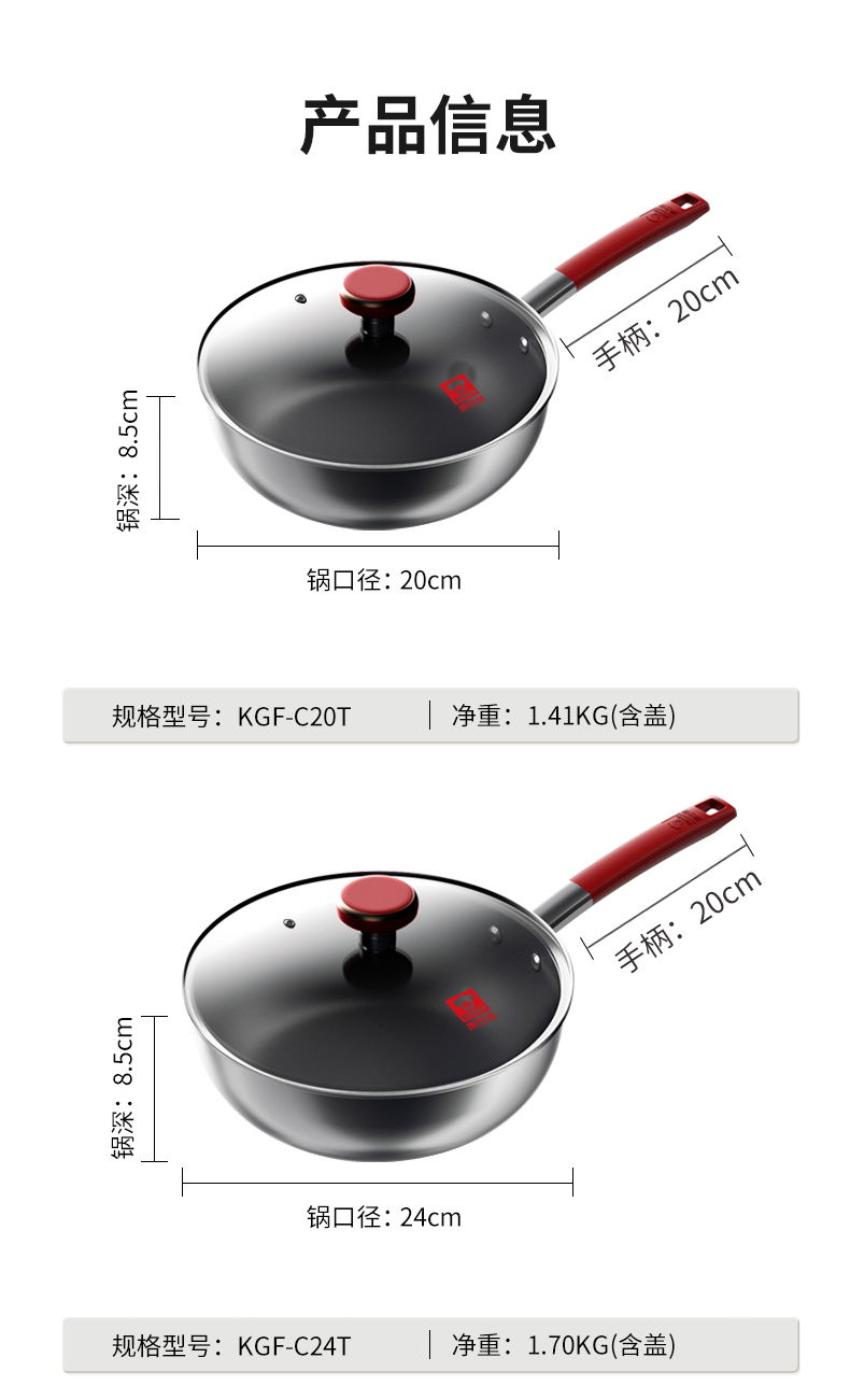 【送原厂三件套】康巴赫第三代双面屏蜂窝不粘锅