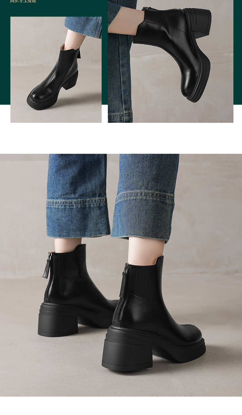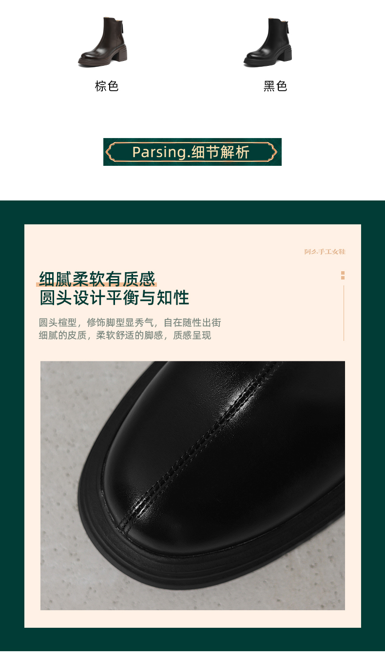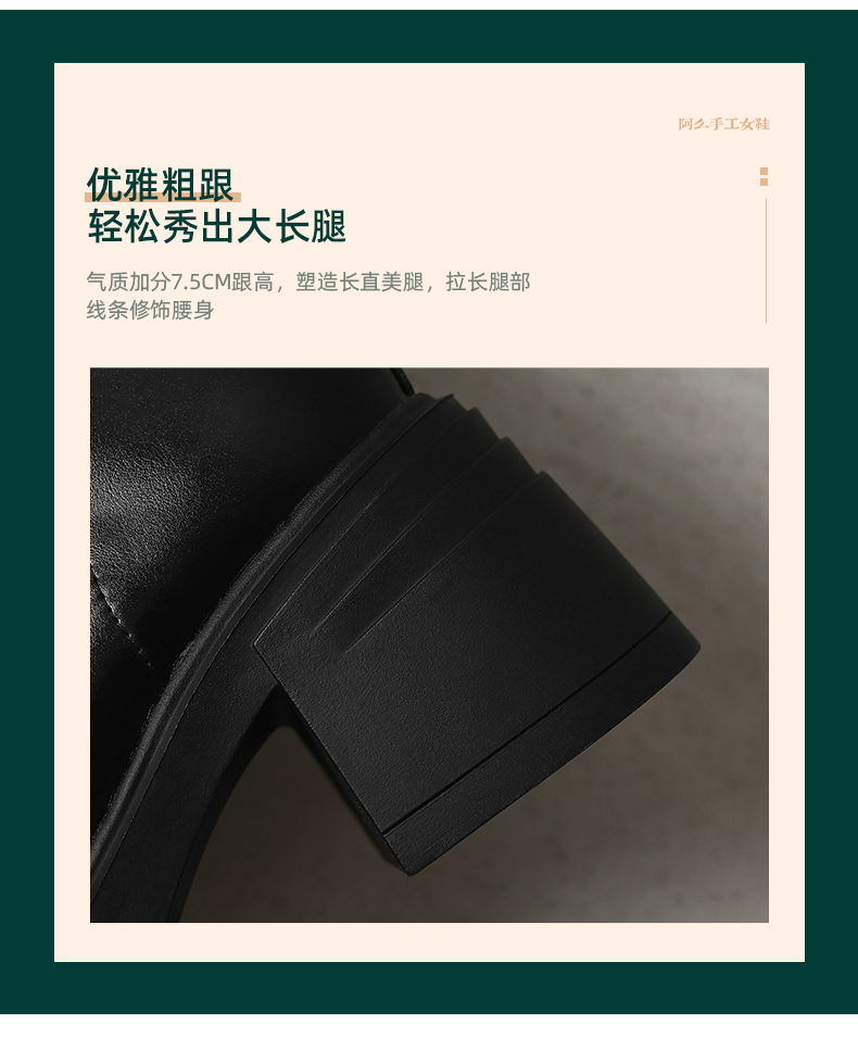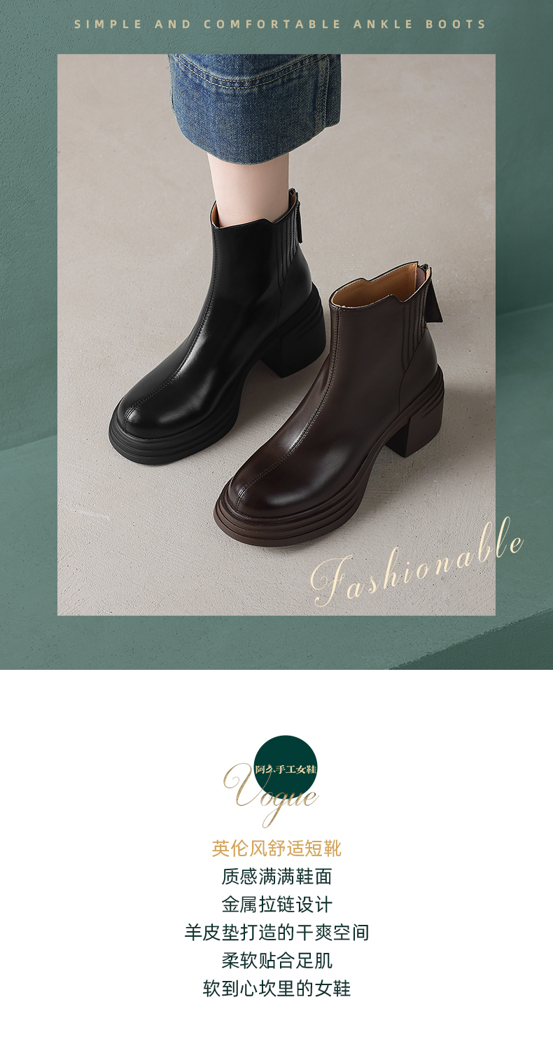阿么手工女鞋防水台高跟短靴女7.5CM轻便不累脚纯色秋冬真皮靴子