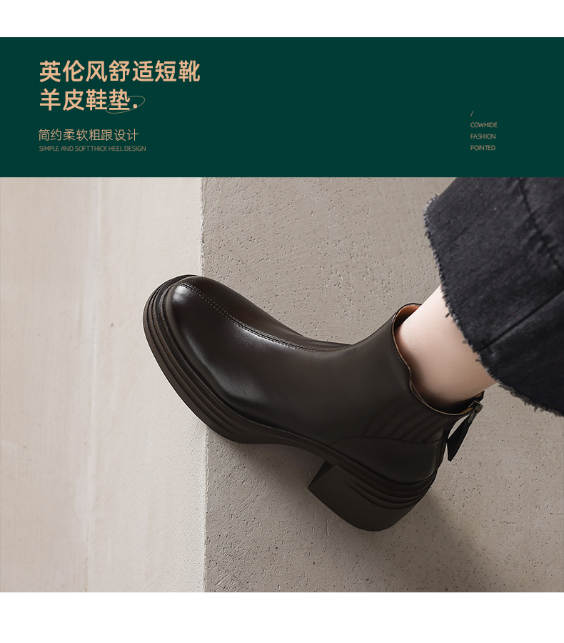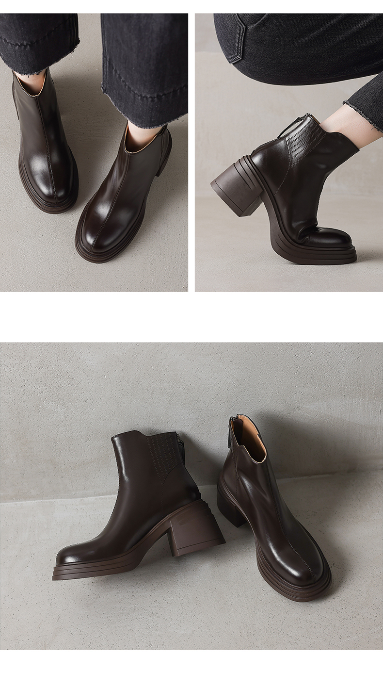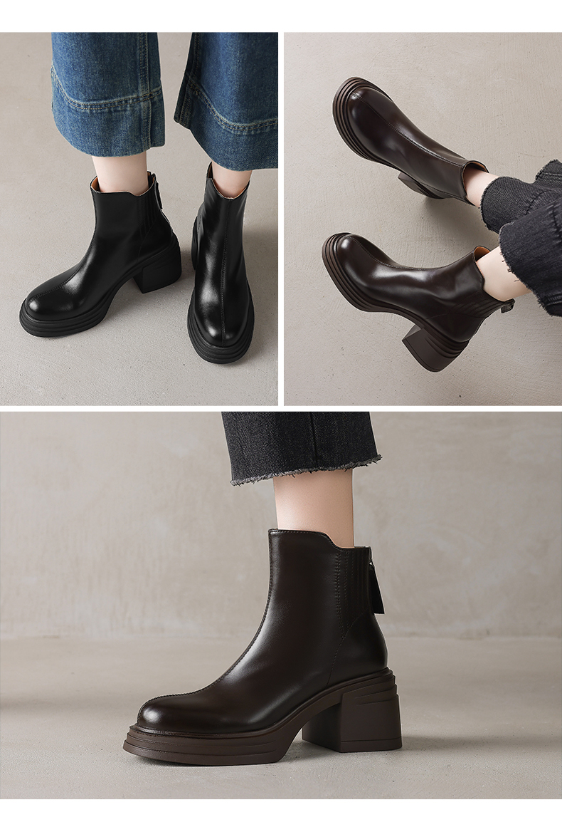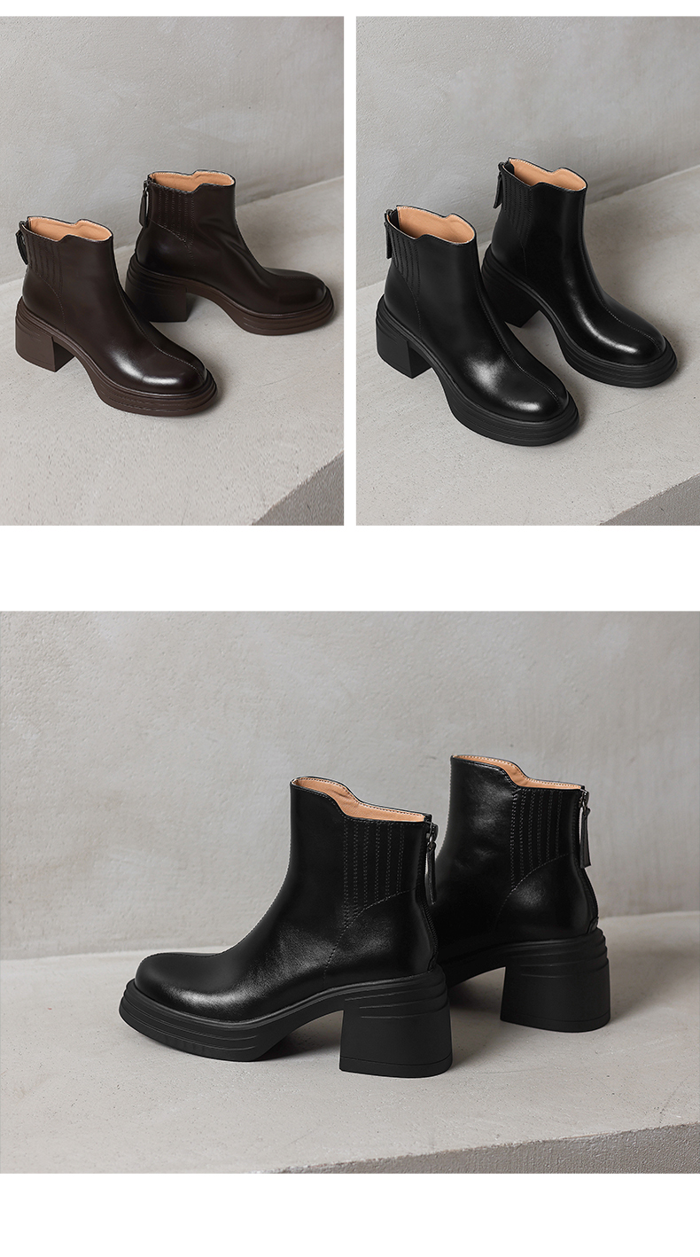 阿么手工女鞋防水台高跟短靴女7.5CM轻便不累脚纯色秋冬真皮靴子