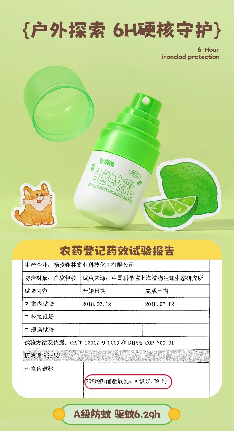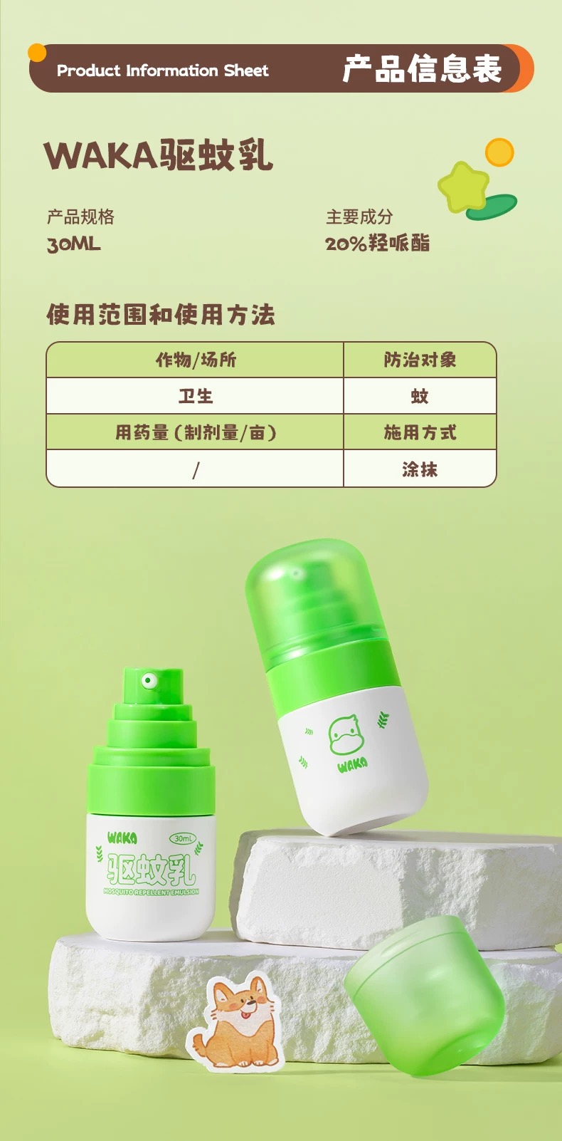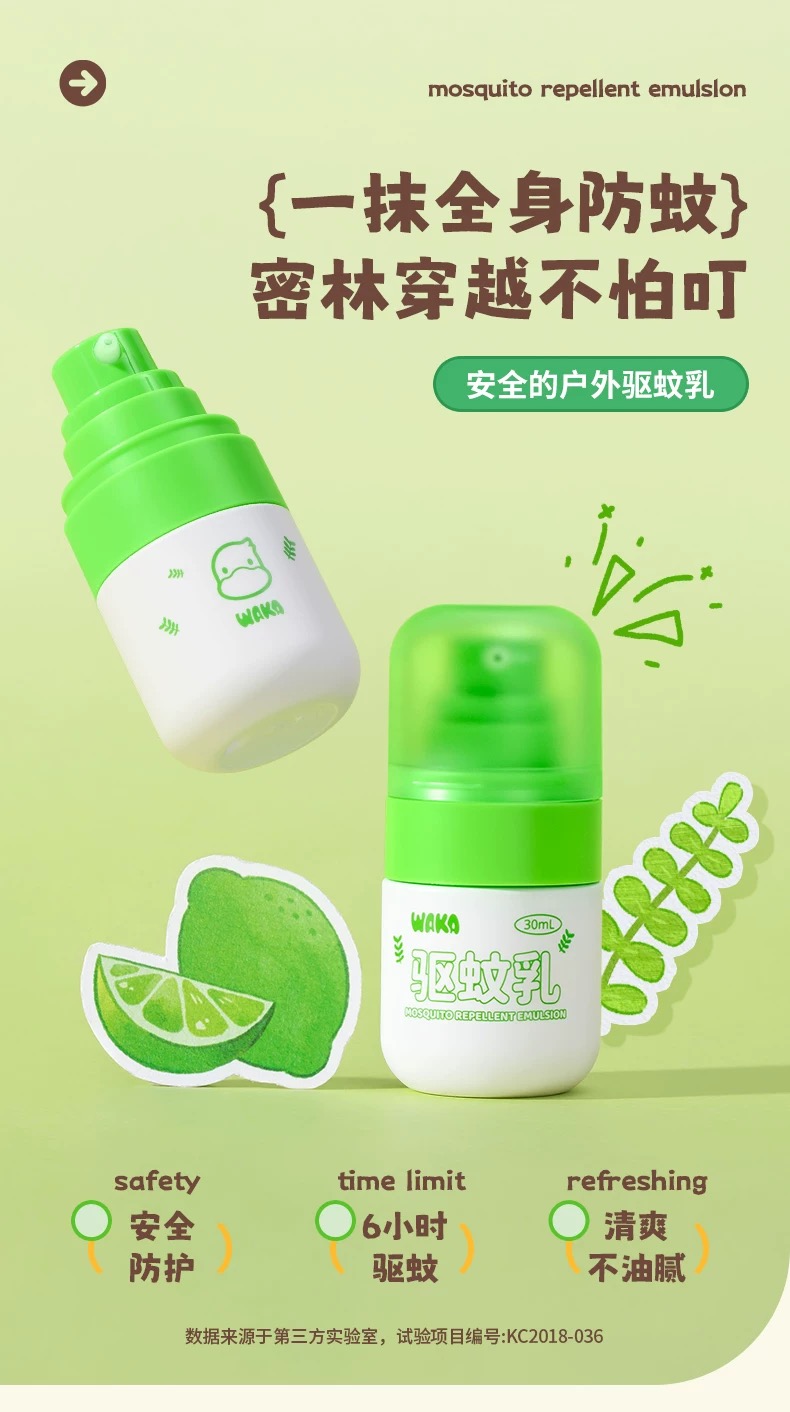 WAKA驱蚊乳防蚊虫叮咬深度户外驱蚊水露营野餐便携小绿瓶非喷雾