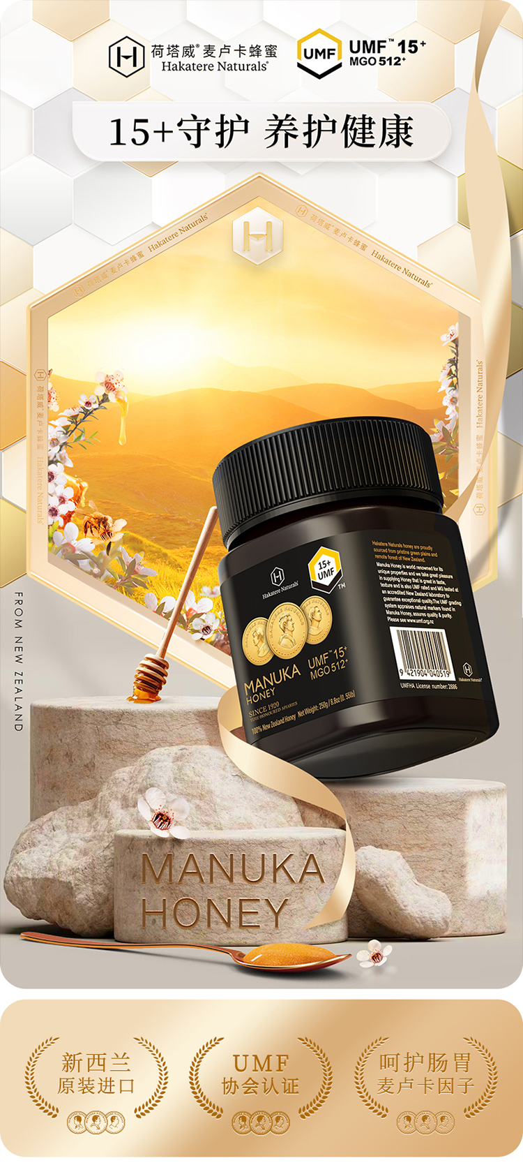 荷塔威UMF15+麦卢卡蜂蜜新西兰原装进口官方旗舰店正品
