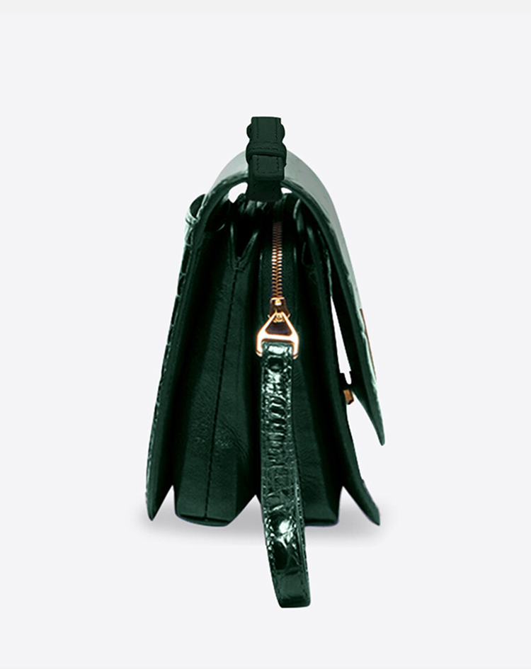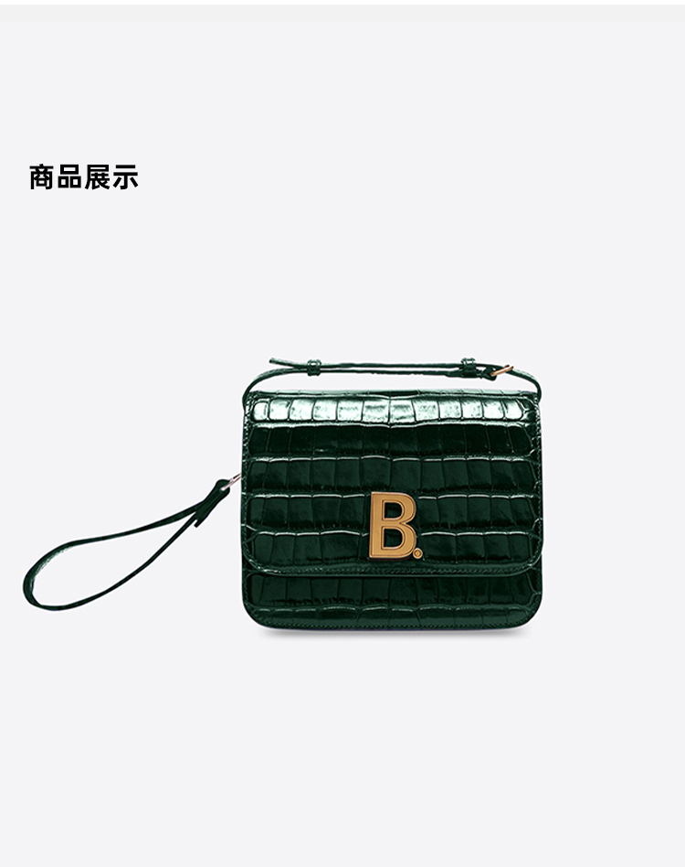 BALENCIAGA 巴黎世家 女士皮革鳄鱼压纹金属徽标标牌迷你提挎包 墨绿色 618156 1LR7M 3011